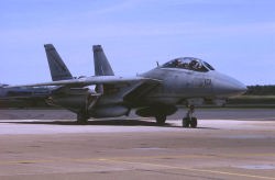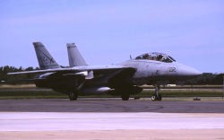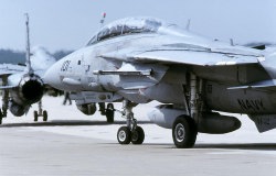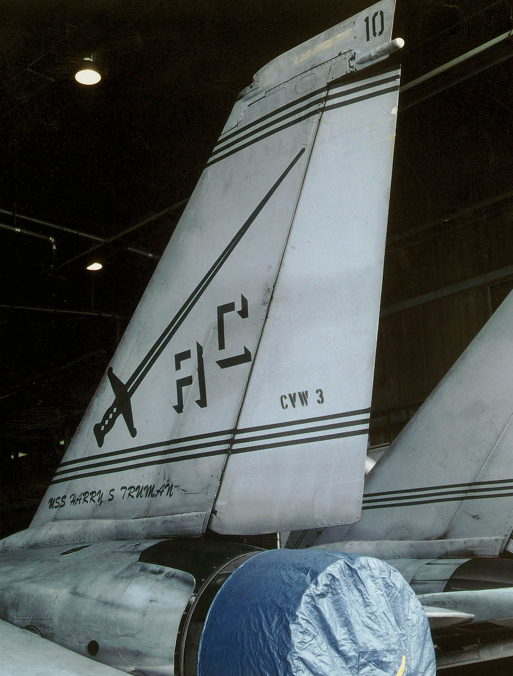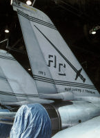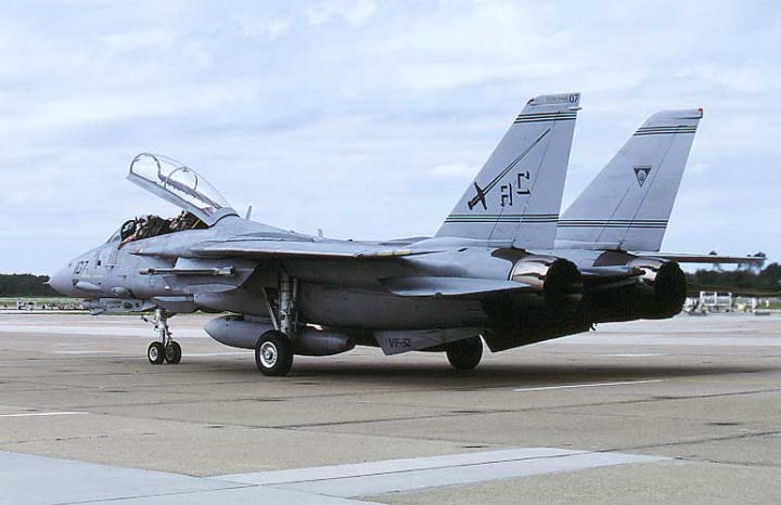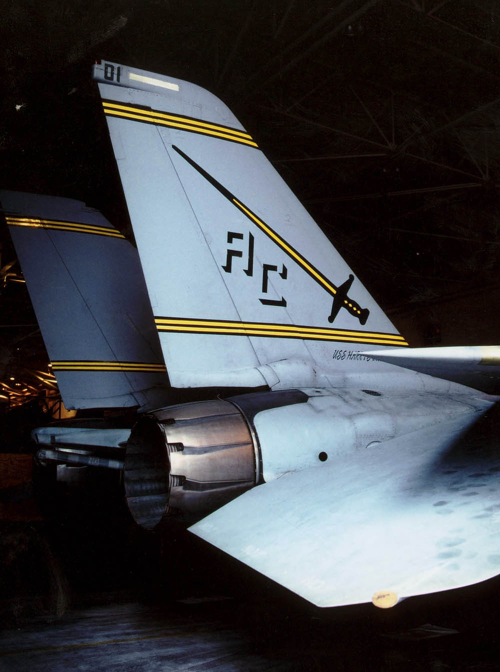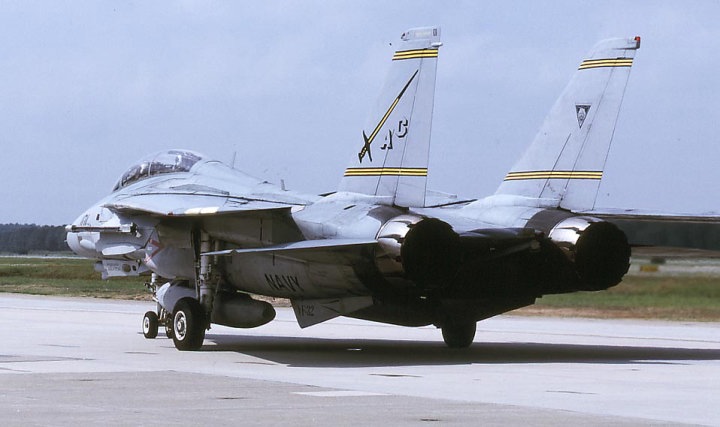 1974年にF-4BからF-14Aに転換したVF-32は、尾翼をイエローを基調にホワイトのラインを入れた非常に目立つ塗装でデビューした。この塗装は数年でロービジ塗装に変更され消えたが、その後はロービジマーキングで記憶にも薄い。現在は、部隊名の通りに剣を尾翼に入れてなかなか様になっている。