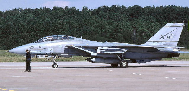 1989年、リビヤによるシドラ湾領海宣言で緊張した地中海において、哨戒中にリビア空軍のMig-23の攻撃を受け、即座に反撃に転じスパローミサイルで少なくとも1機を撃墜している。Mig-23の撃墜記録は、この飛行隊の数少ない戦勝記録の一つであるが戦歴は多く、その後の湾岸戦争、イラクフリーダム作戦などにも参加した歴戦の部隊でもある。