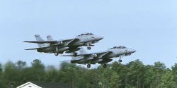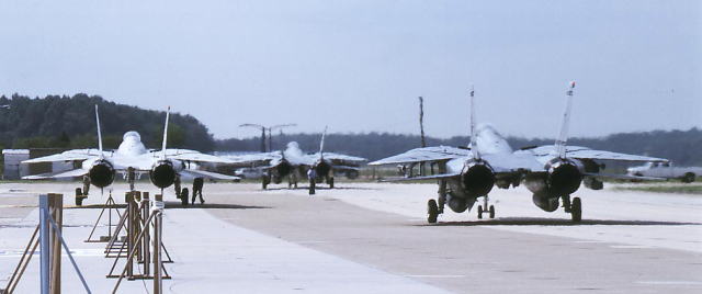 タキシーするVF-32のAC-104とAC-107の機首には、イラクフリーダムの出撃マーキングが書かれている。マーキングが誘導爆弾であることから これらの任務がほとんど対地攻撃を主としていたことが分かる。AC-107の機首にはスペースシャトル コロンビアの事故を痛むモニュメントも書き込まれていた。