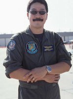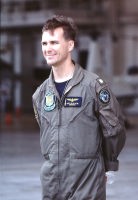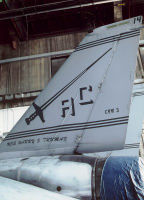 何度オシアナに言っても中々出会わなかったのが、このマーキングの機体である。1度オシアナのエプロンでこの機体の離陸を見逃してしまい、次に目にしたときはハンガーの中。でも 綺麗なマーキングですよね〜。ベースはブラックではなく ダークブルーであった。翼の内側には、現在の所属であるCVW-3のインシグニアが書かれていた。
