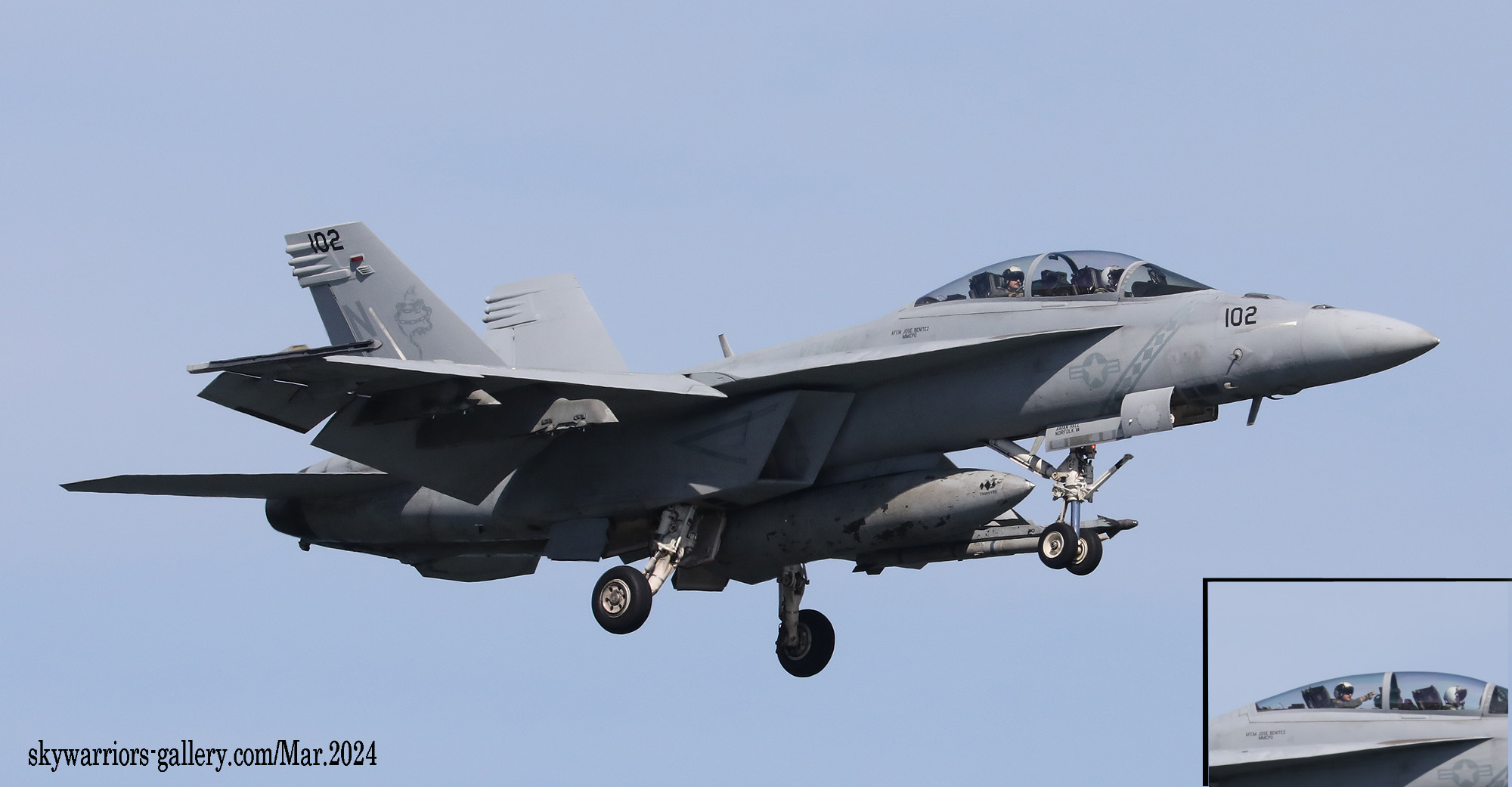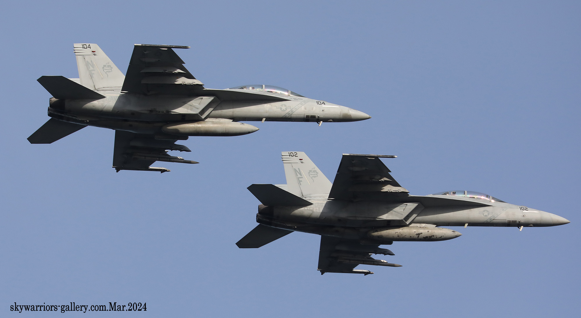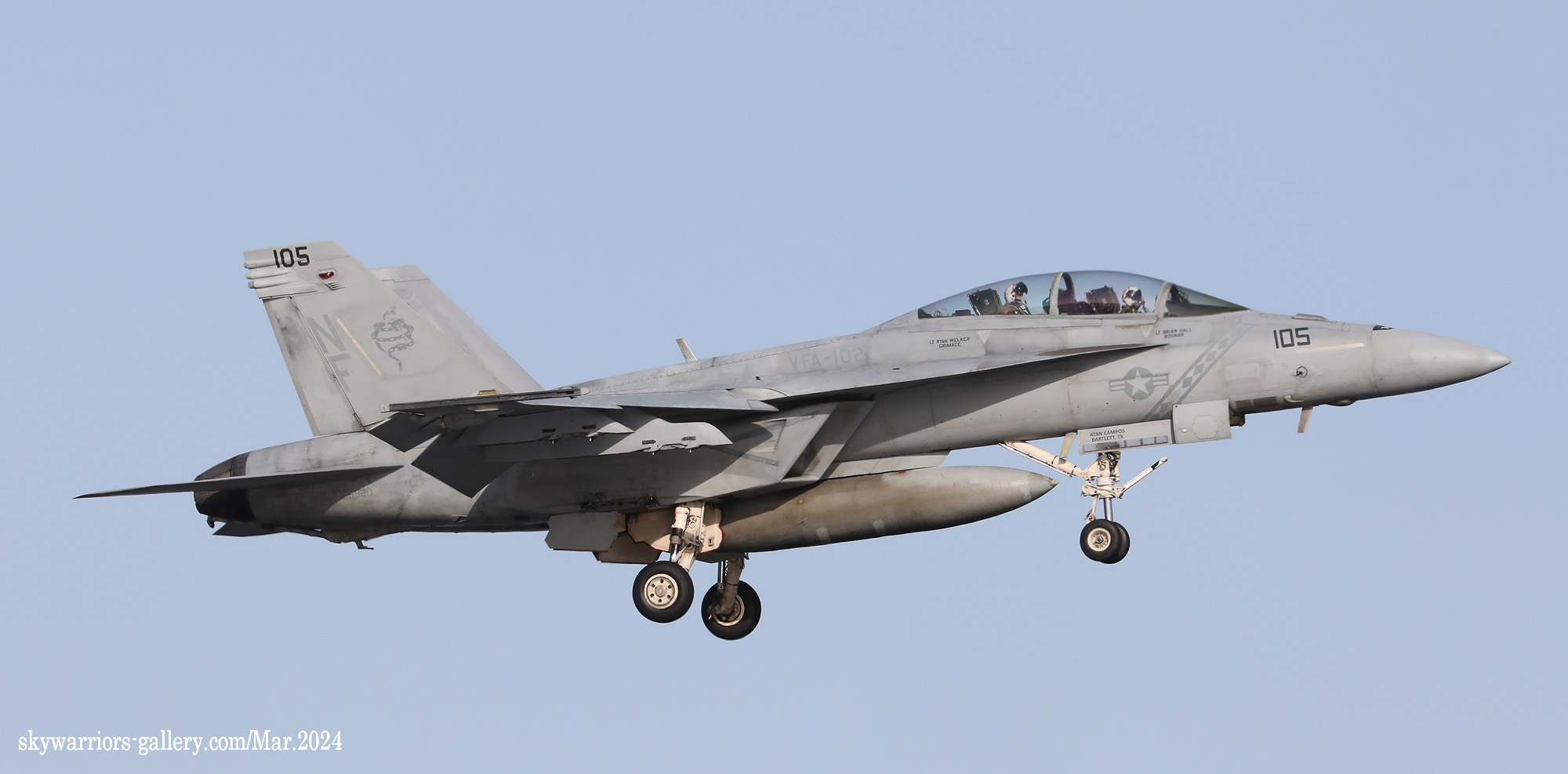 2024年3月における4日間の岩国基地撮影行で、3月27日が唯一日中晴天に恵まれた1日だったが、本項ではこの日に訓練飛行したVFA-102のFA-18Fを中心に、その様子をお伝えする。