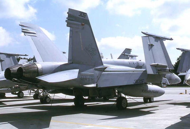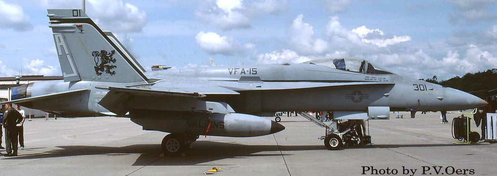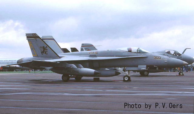 ヨーロッパのエアショーに展示されたVFA-15のCAG機、一番下写真のマーキングと比較して、皆さんはどっちがお好みでしょうか? 私はもちろんA-7Eのマーキングを踏襲した左写真のマーキングの方が好みだ。