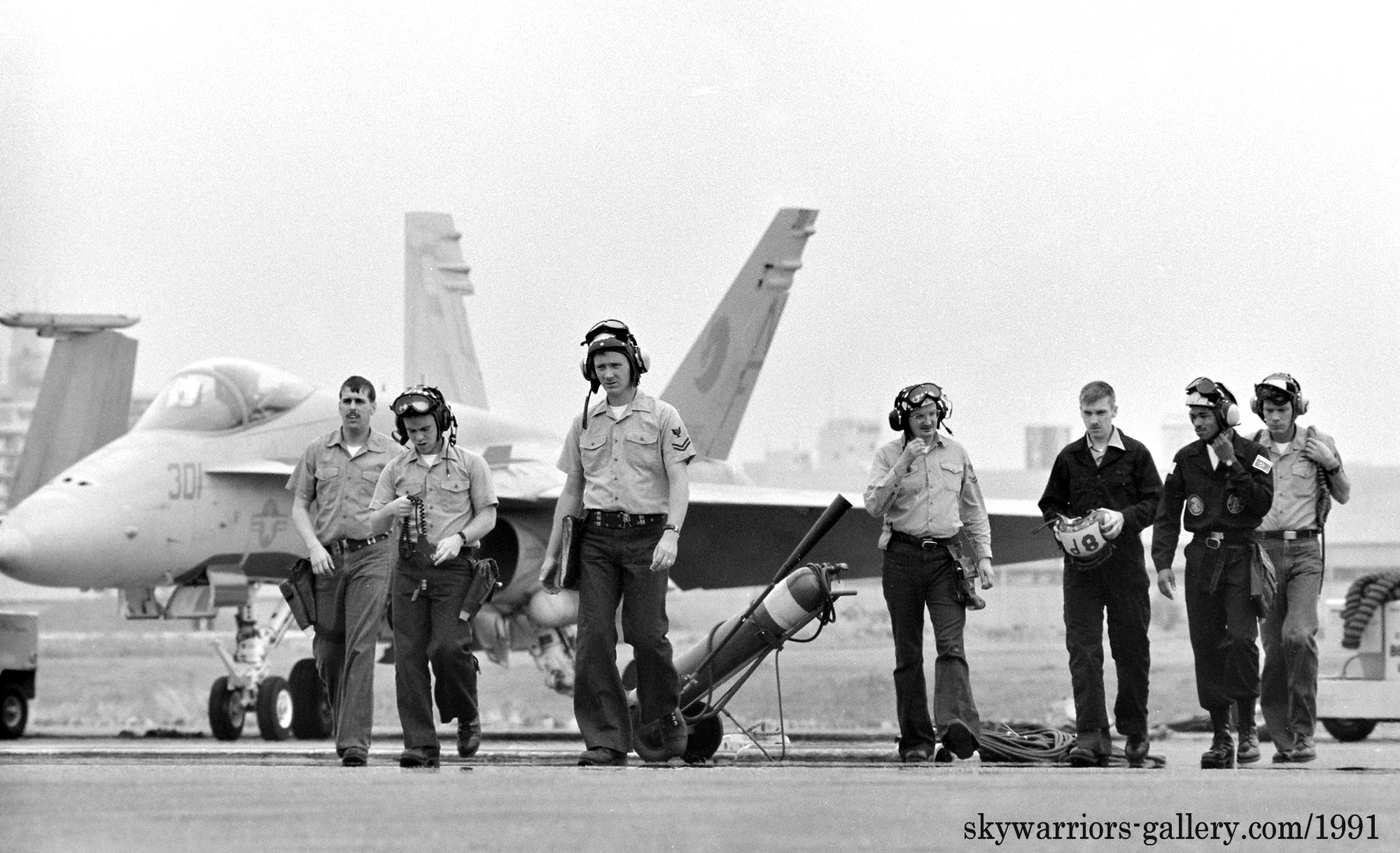 ↑ 1990年に目にしたVFA-192のFA-18A各機は、機首番号Modexの下に”E”を誇らしげに書き込んでいる。これは同隊がバトルEアワードを受賞した記念であるが、バトルEとは年間を通じて最もコストパフォーマンスの高い即応性を維持した部隊に送られる称号。