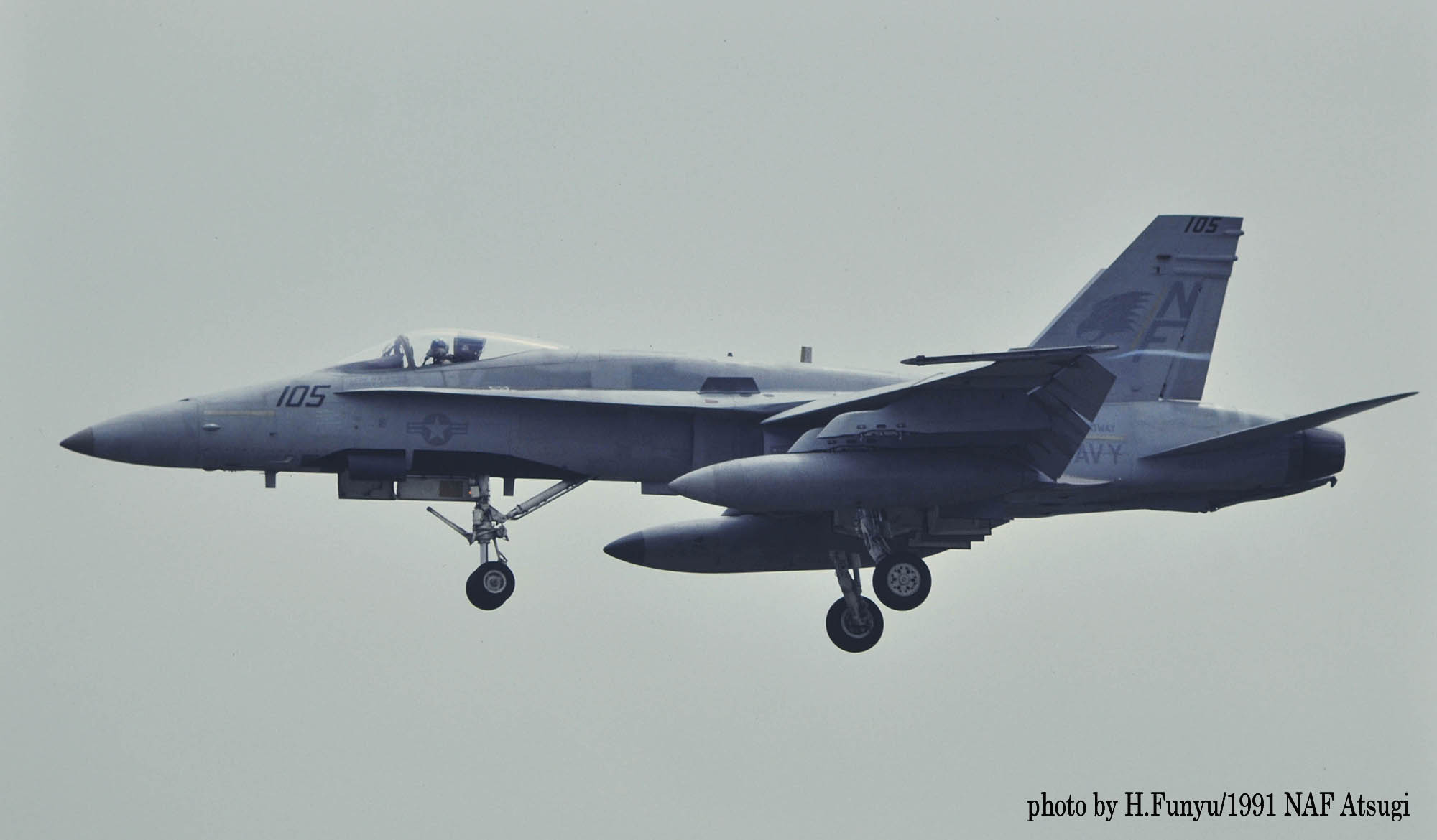 ↑ FA-18Cとなって1992年の春は盛んに完熟飛行のためのフライトが繰り返された。C型は最初から疑似キャノピーを書き込んでいた。