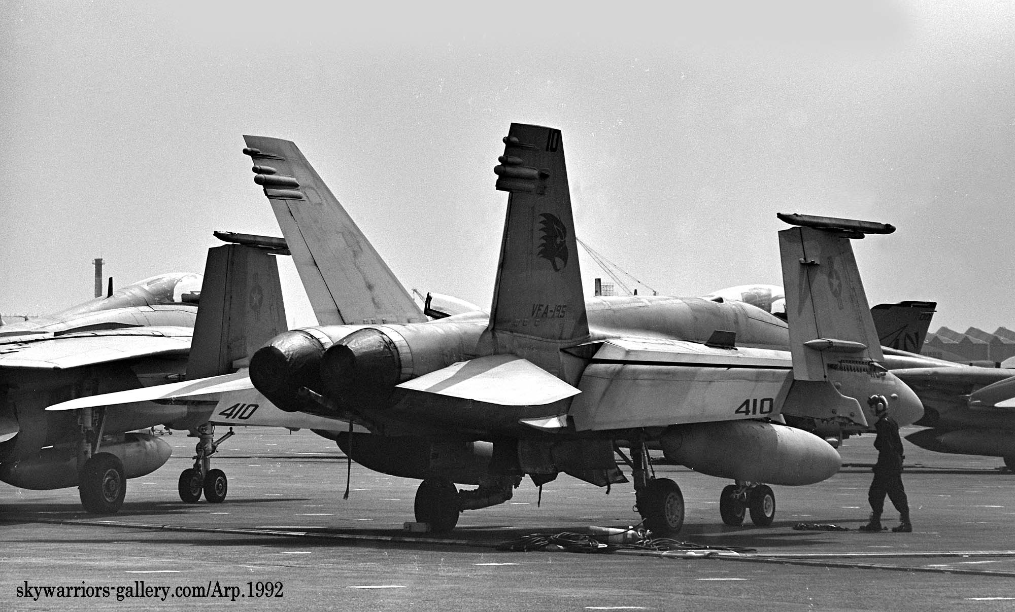 ↑ 1992年の厚木航空祭Wing-92では、初めてC型の展示がされた。VFA-195からは、”NF-403”が展示。疑似コクピットとモデックスは、完全な黒色を使っている。