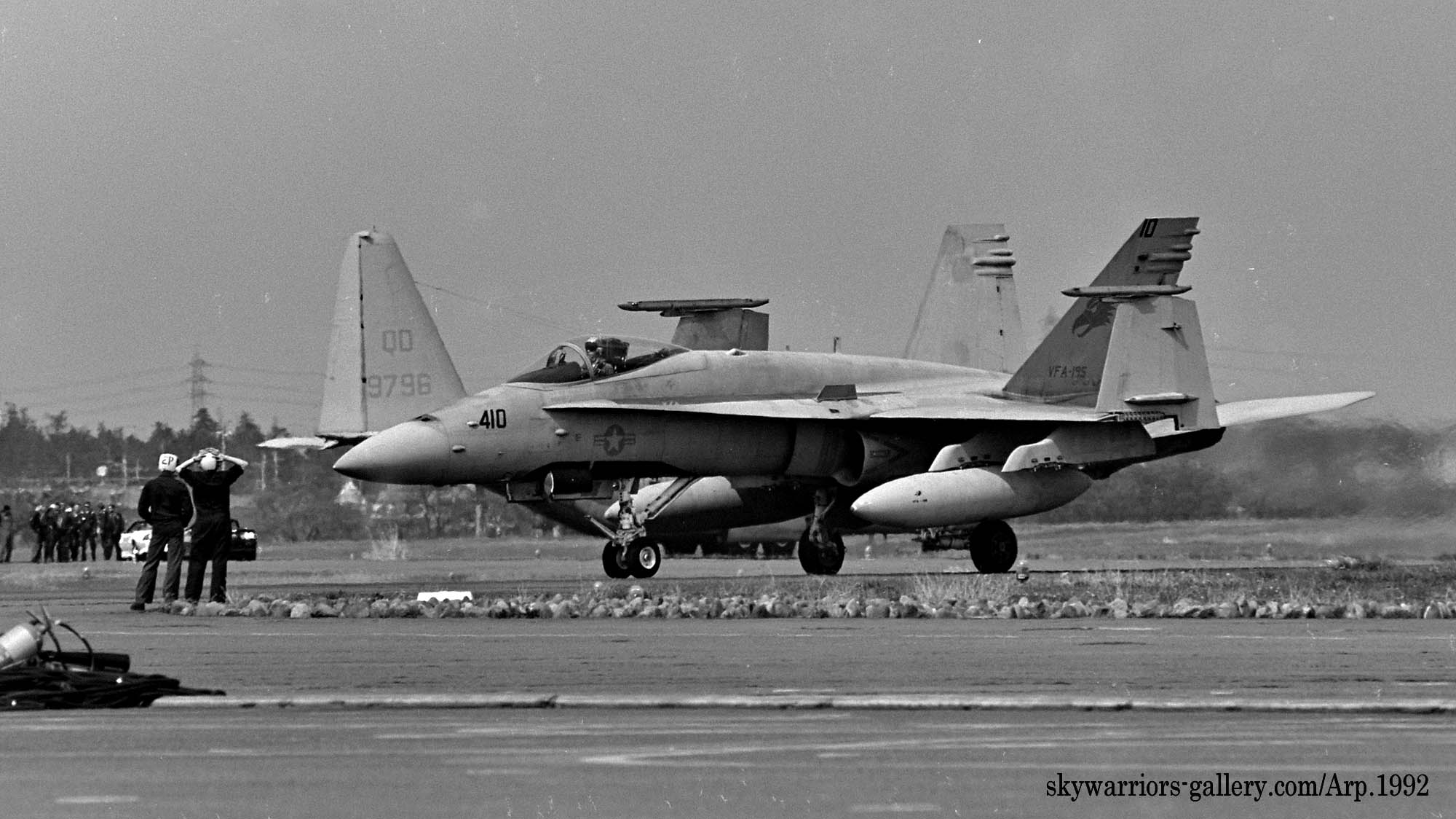 ↑ 1992年4月の厚木航空祭"Wing-92" FA-18は既に”C型”に更新されていた。今まで禁止されていたラダーへの塗装が認められ、テールレター”NF”がラダーに移動。