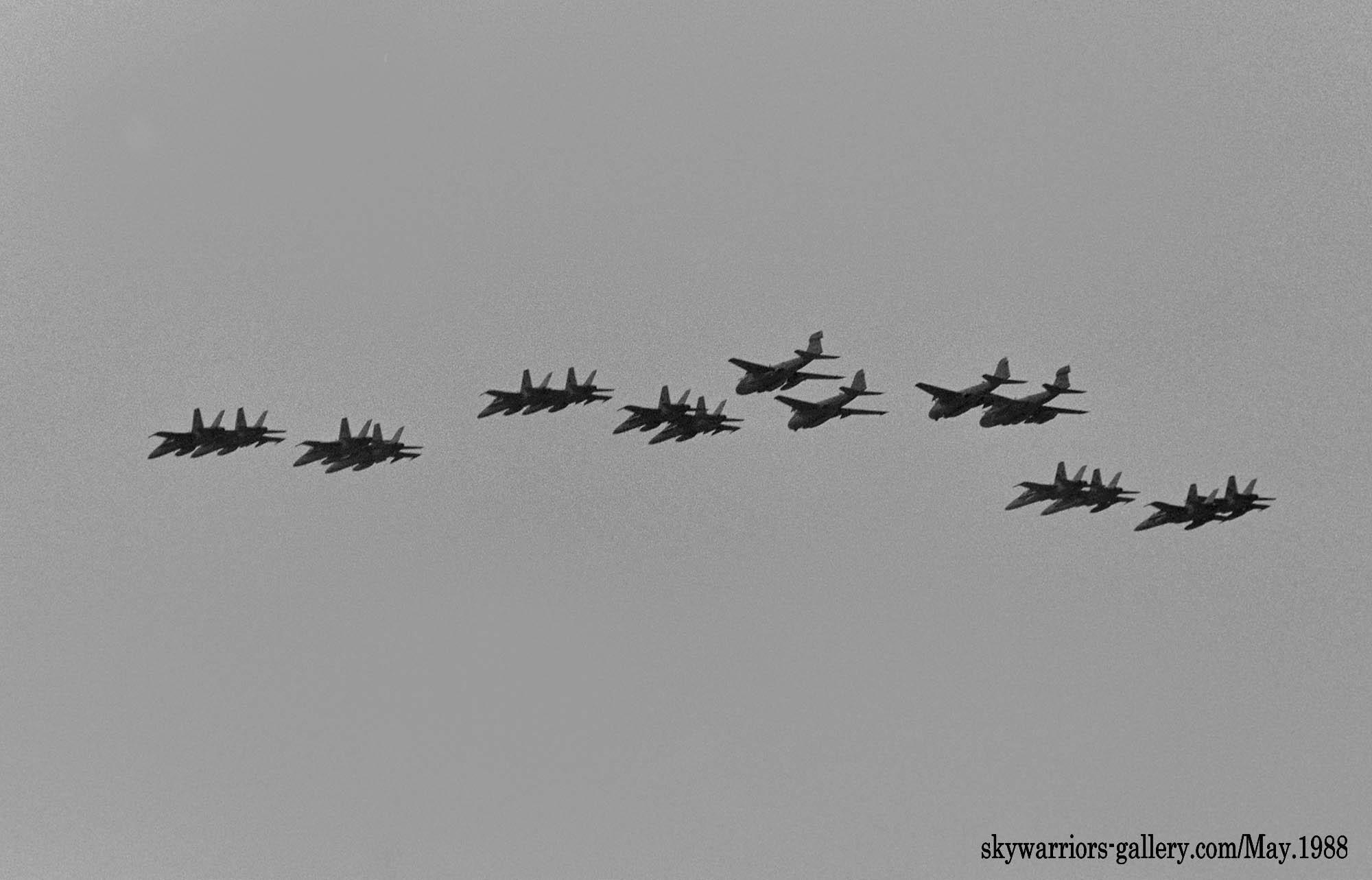 ↑ 1988年デモフライトは、何とFA-18A 12機とA-6/EA-6Bの16機編隊であった。