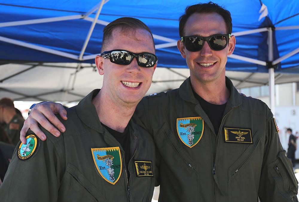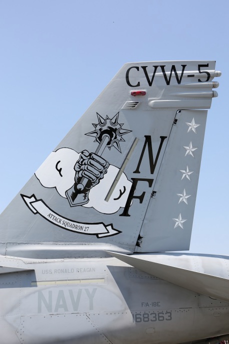 2017年4月29日の厚木基地公開で10年ぶりにクルーの写真を撮ることができたが、彼らの胸には、新旧のスコードロンパッチや見慣れない配色のものがあった。この飛行隊は、1967年9月に創設だから2017年は創設50周年という大きな節目に当たる年なのである。A-7AコルセアⅡで空母コンステレーションに載って北ベトナム攻撃に加わって以来 半世紀が経過しようとしている。創設の頃、この日ファインダーに収まった彼らの殆どが、まだ生まれていなかったのだろう。飛行隊は戦地を変えても、そこに足跡を残しながら歴史を刻んでいく。(2017/4 記)
