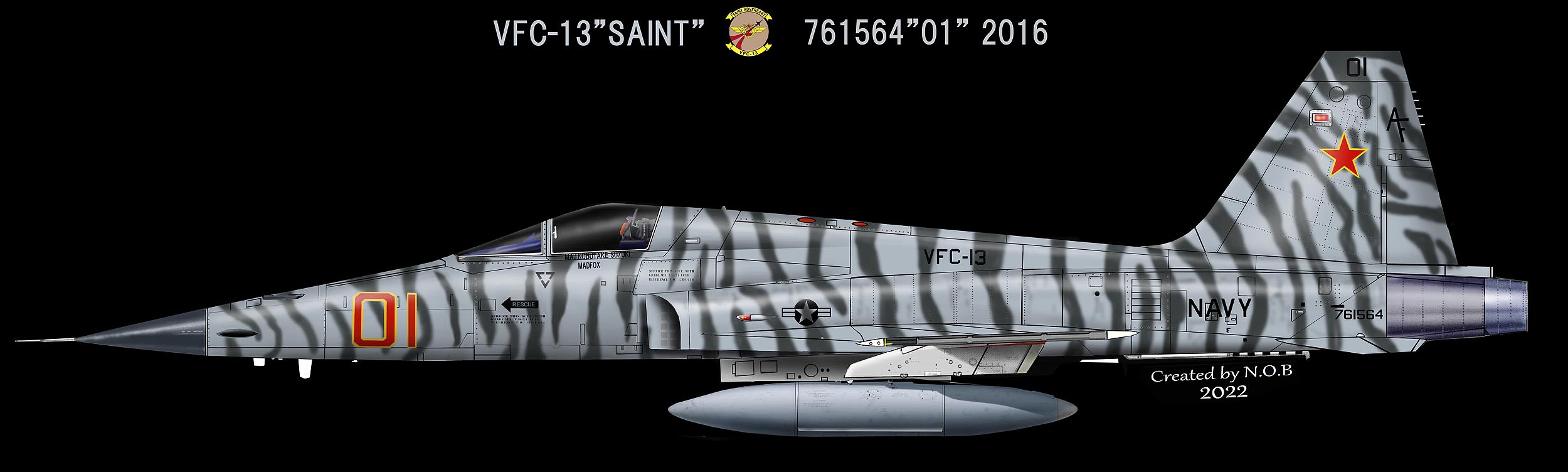 VC-13は1988年にVFC-13に名前を換え再編成された。一時的にFA-18の配備を受けたが、NASミラマー海軍基地が海兵隊に移管されるタイミングで、本拠地をNASファロンに移しアドバーサリー任務を主体とする飛行隊となった。1993年10月にFA-18を手放し、その後継として1996年4月に11機のF-5E,F,Nを受領して本格的に運用が開始された。この頃同時に、アメリカ海軍にはVFC-13から振り分けられたF-5N/Fで編成されたVFC-111が創設され、海軍は東西にF-5の仮想敵機訓練部隊を持つことになる。何故か、空軍でアグレッサーと呼ばれている呼称を使わず、アドバーサリーと呼ぶのは対抗意識からかも知れない。