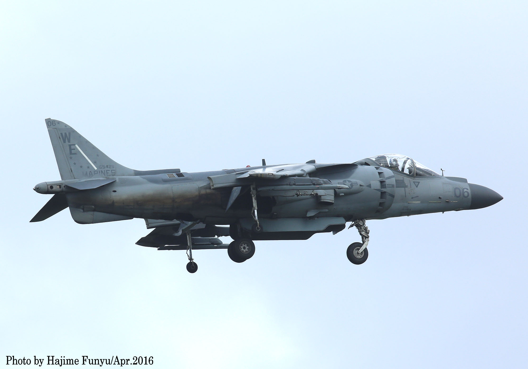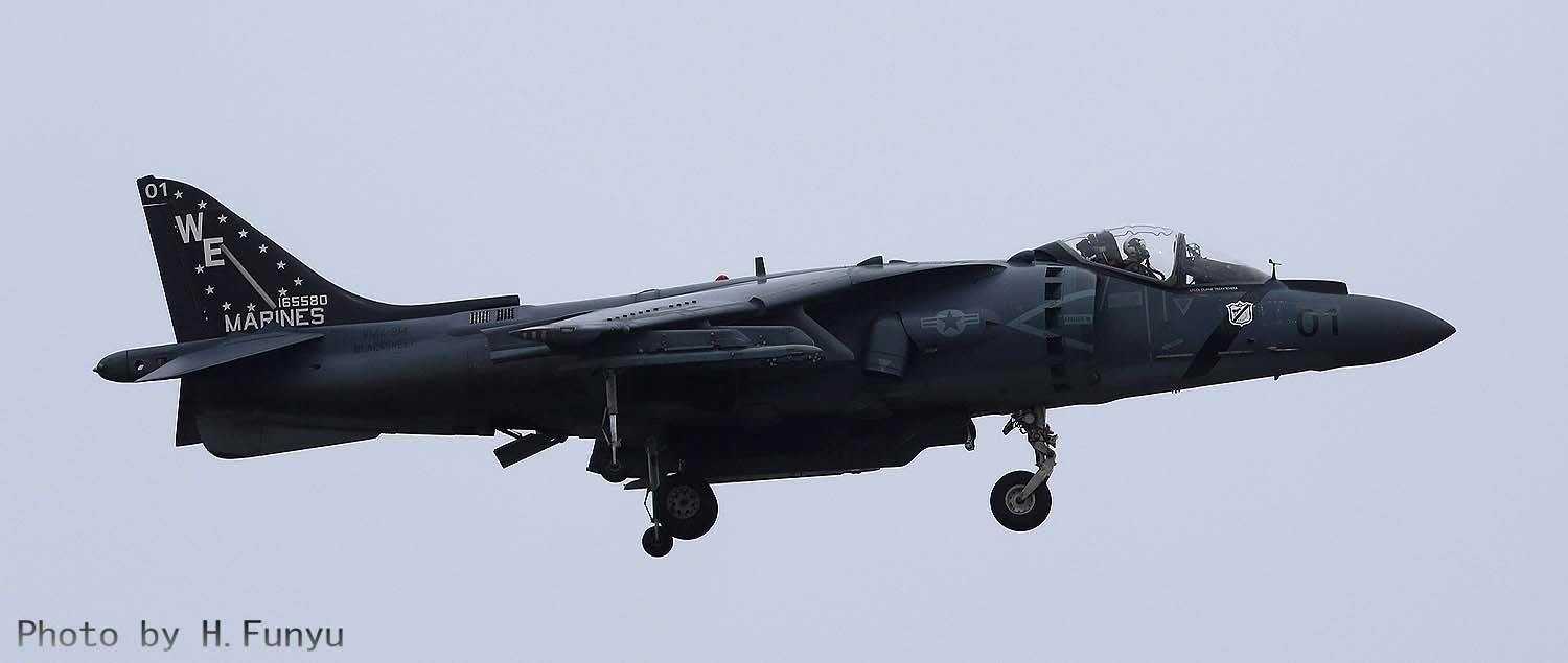 ↑2016年5月某日再び厚木基地に飛来したAV-8B VMA-214/WE-01 Bu.No.165580。この時WE03も伴った2機での厚木飛来であった。フニュ師匠撮影