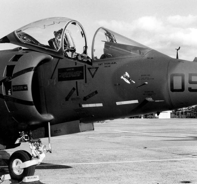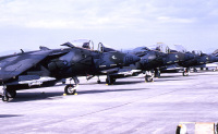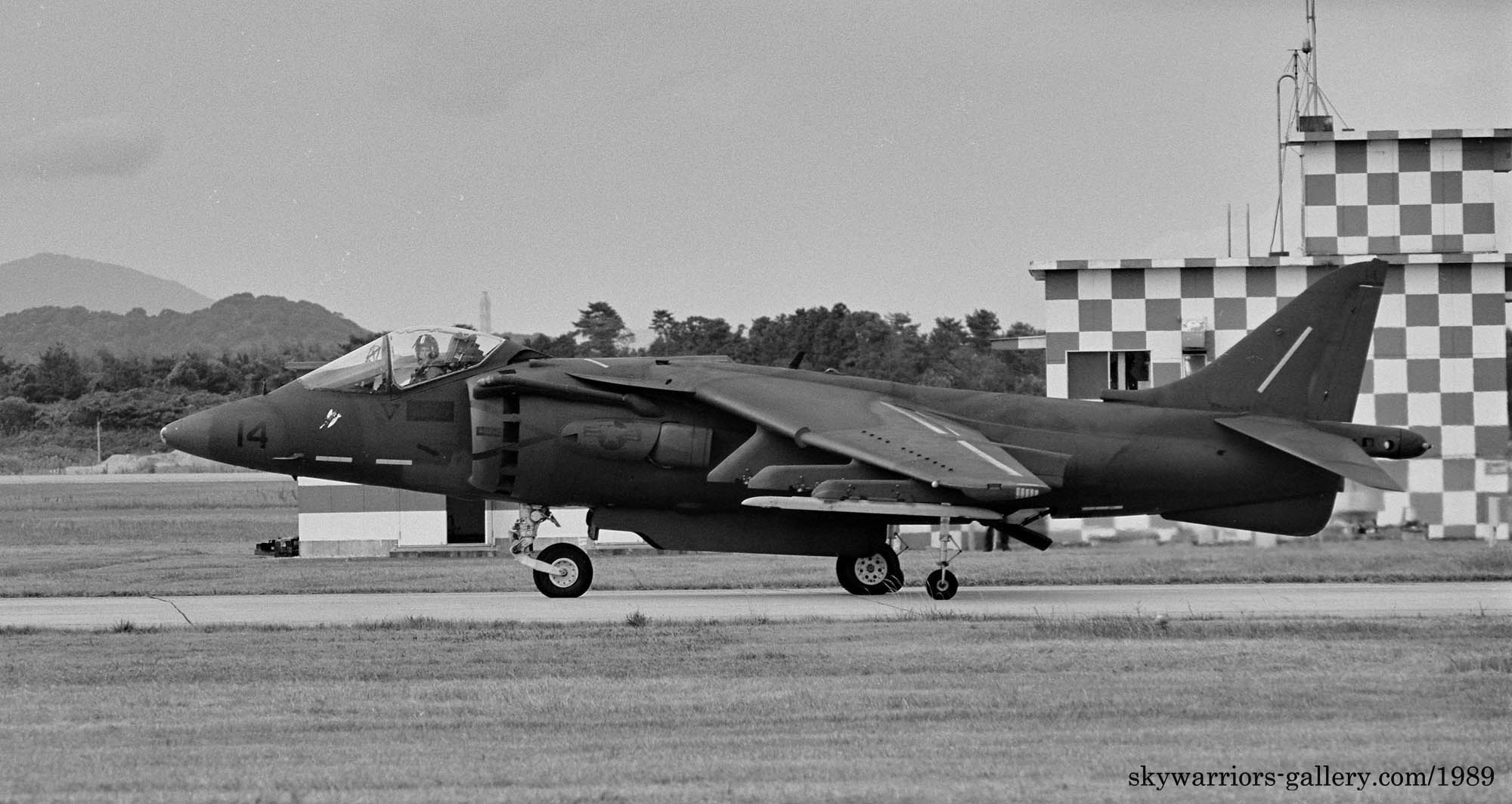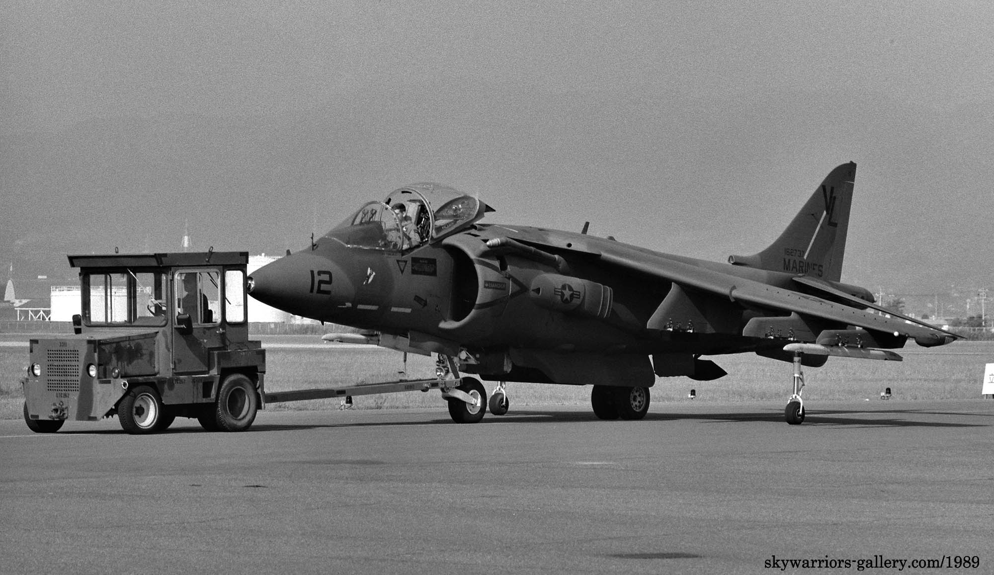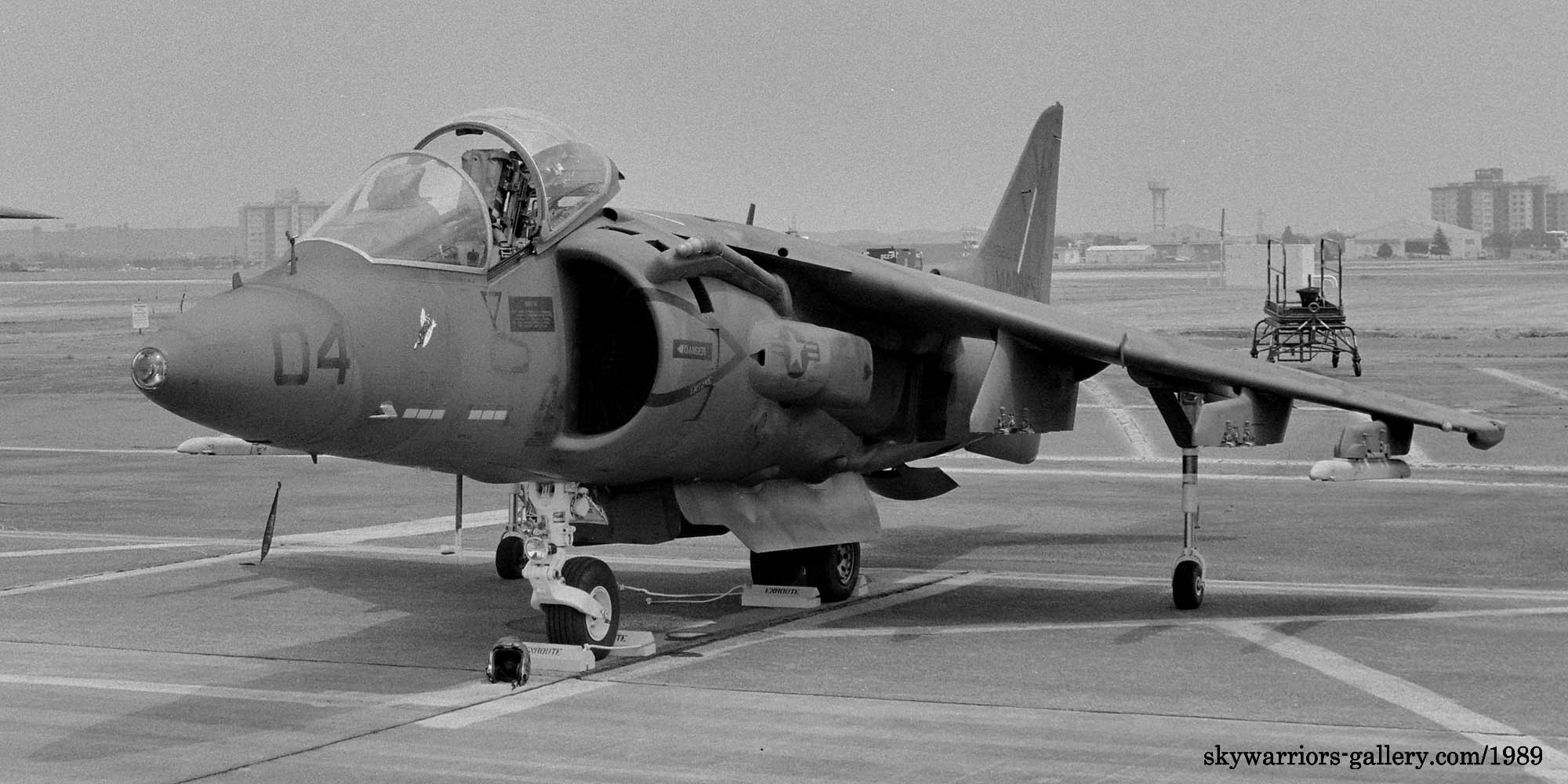 1983年1月24日 当時チェリーポイントのMAG-32に所属していたVMA-331は、A-4Mから新鋭のAV-8Bに転換を始めた。”ハリアーⅡ”の海兵隊最初の飛行隊であるから当然注目の的であったが、彼らは21名のパイロットと15機のAV-8B”ハリアーⅡ”で転換任務を開始し、2年半後の1985年8月にはクロフォード中佐の元、完全なる作戦遂行の能力を持ったハリアー部隊に仕上がったとされる。1987年1月から強襲揚陸艦ベローウッドで初の海外展開を経験、1989年6月には岩国展開である。私は彼らが来るのを指を数えて待っていたが、先代のAV-8Aに比べ重厚感のあるB型は結構絵になる被写体であった。