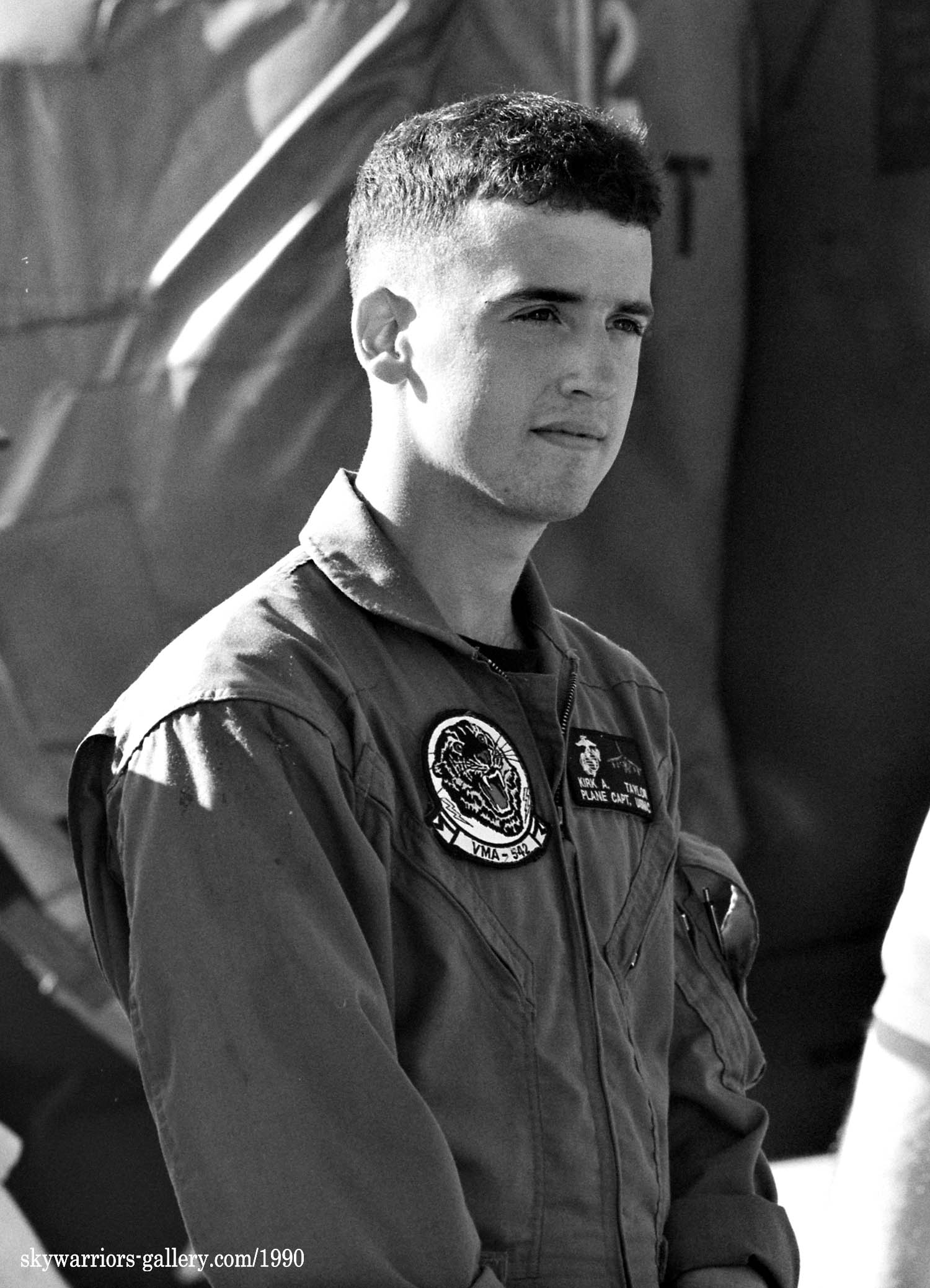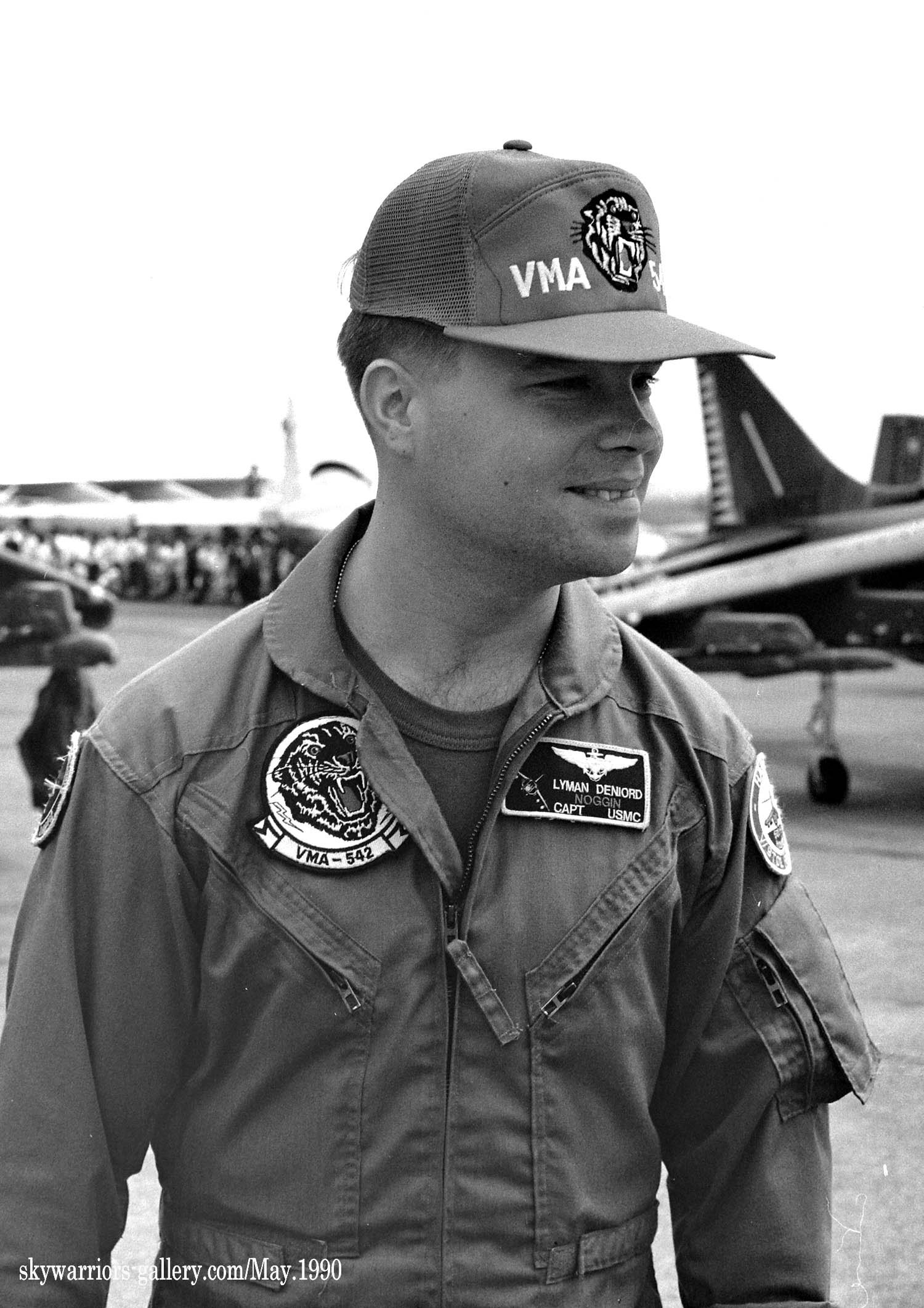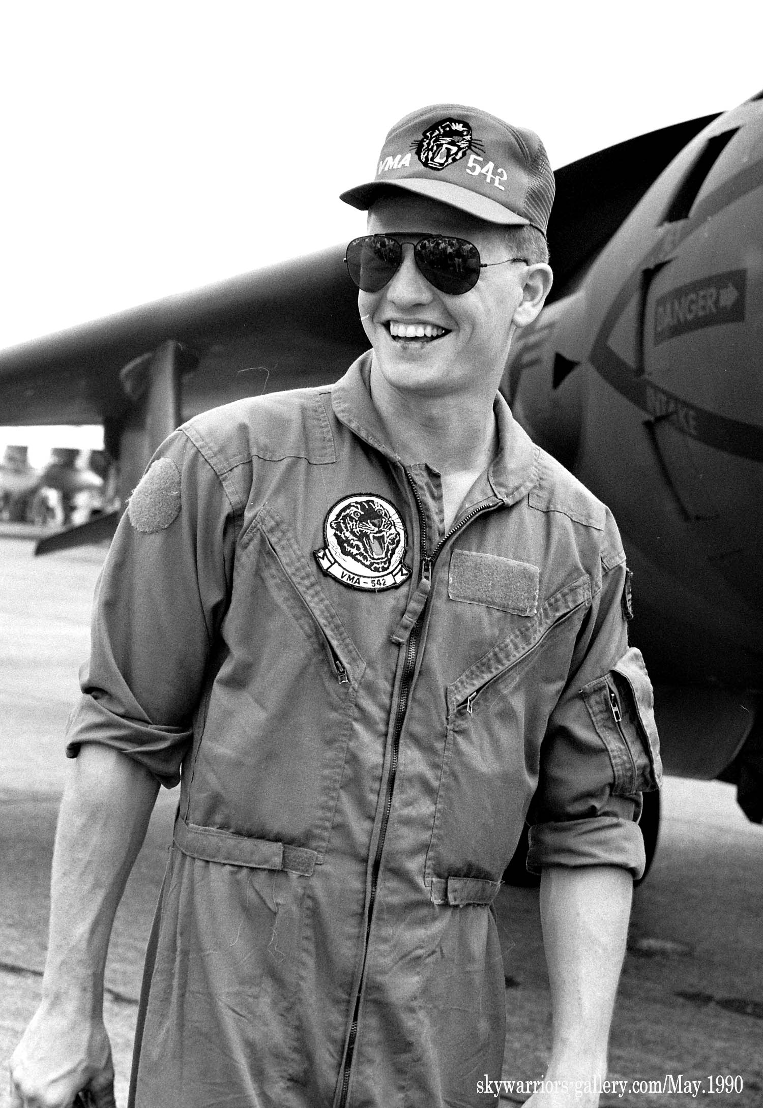 1989年12月 新型のAV-8BハリアーⅡに更新されて岩国に配備されたVMA-543。1990年1月に韓国に向かう途中、伊江島付近で墜落事故が発生、早速1機を失っている。翌年1990年5月20日厚木のオープンハウスでは、VMA-542のハリアーⅡが3機もエプロンに並びハリアーファンを喜ばせた。この時に展示された機体は、WH-01、WH-04、WH-06でグリーン系の迷彩に機種に薄いホワイトグレーでトラの頭が描かれていた。