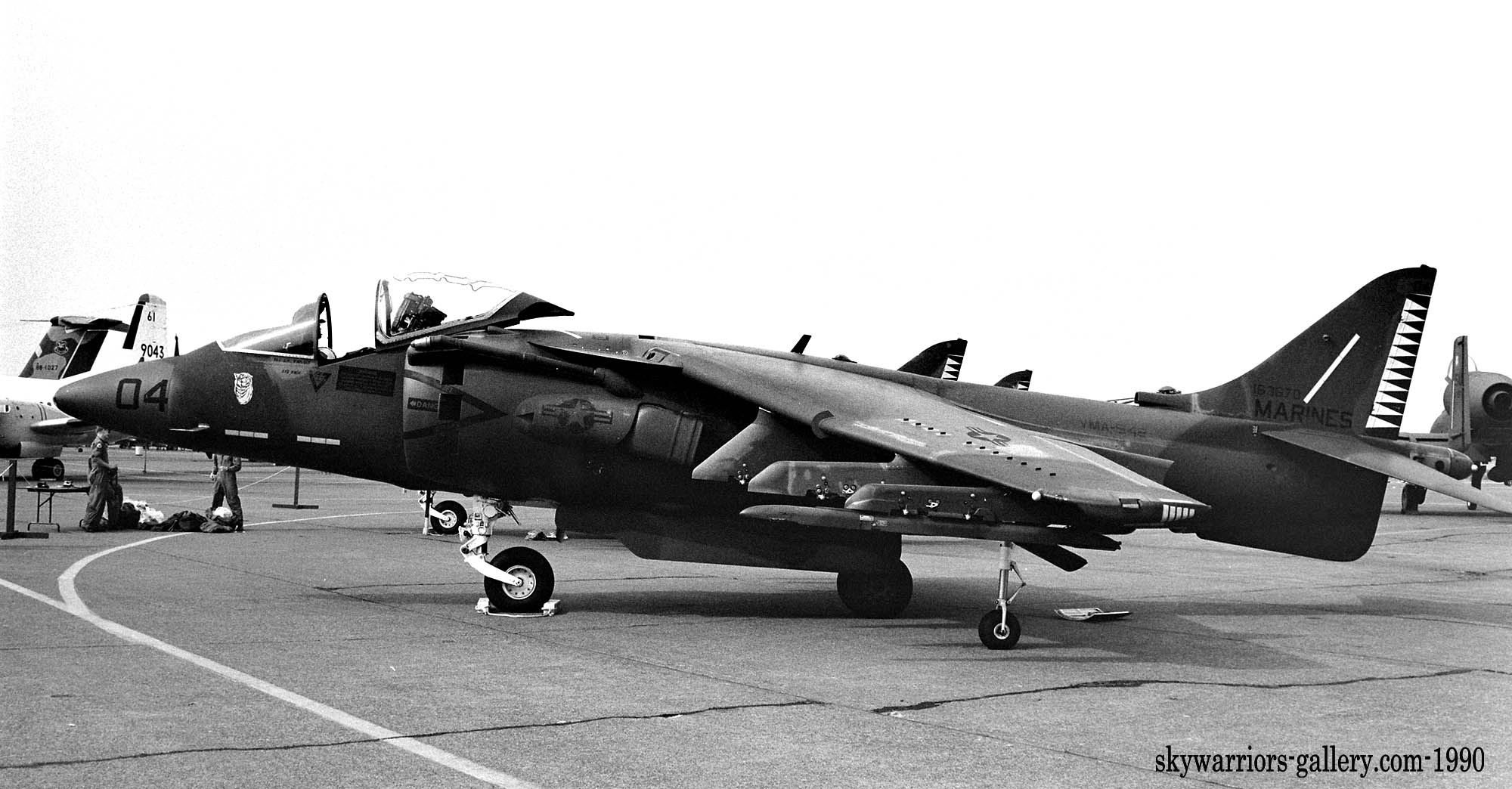 1990年5月 岩国基地公開時展示されたのVMA-542所属のAV-8B。WH-04/Bu.No.163670