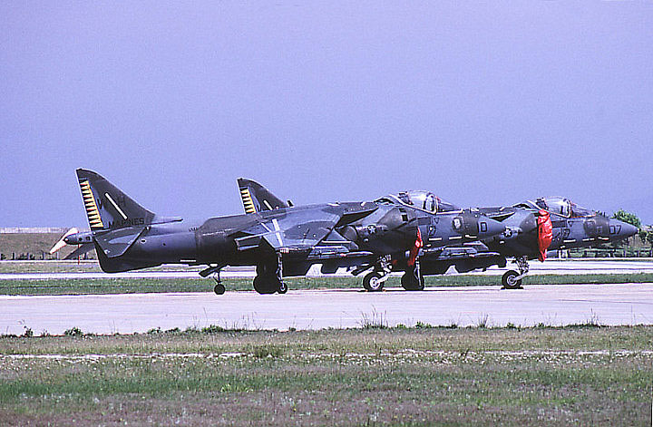 上の写真から17年後に、漸くVMA-542のAV-8Bハリアーと嘉手納基地で再会となった。彼らはレーダーハリアーに機種交換していた。↓