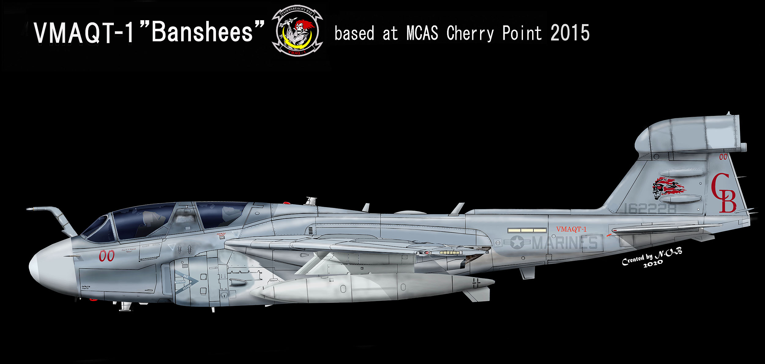 部隊が、実戦部隊からプラウラーの訓練部隊に変更され「VMAQT-1」となった後 CB-00として尾翼にバンシーの頭を描いた司令官指定機であるが、尾翼とModex「00」以外は、完全なロービジ仕様で 航空ショーでの展示はほとんど記録に残っていない。ラダーに朱色で「CB」と入れたのもこの部隊では前例のない大きな特徴である。Bu.No162228