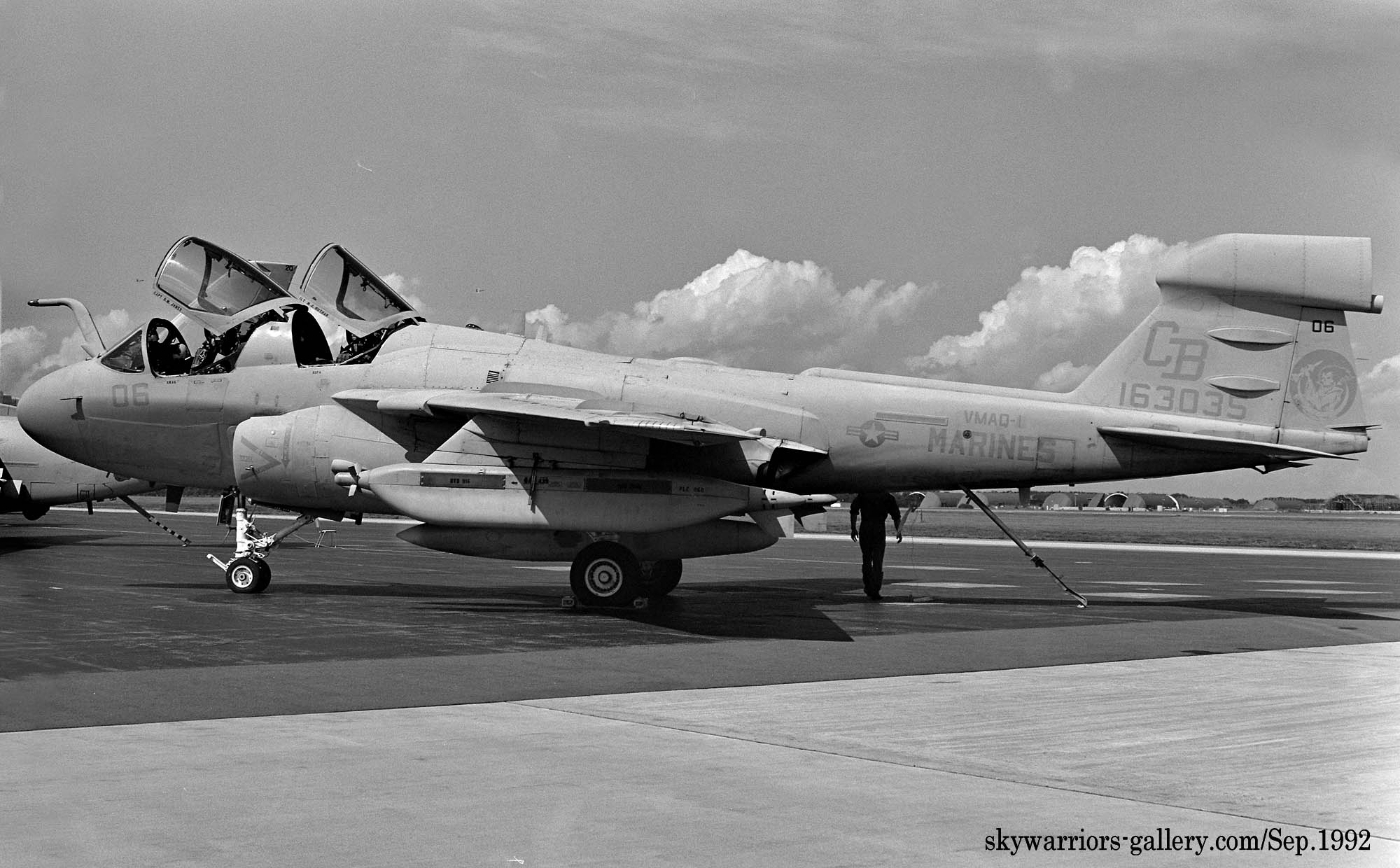 1992年VMAQ-1の新塗装として日本での各地航空祭にも展示された機体で、全体をグレー一色で塗られ、隊長機CB-01だけは、インシグニアをフルカラーで尾翼に描いていた。EA-6B Bu.No.158040
