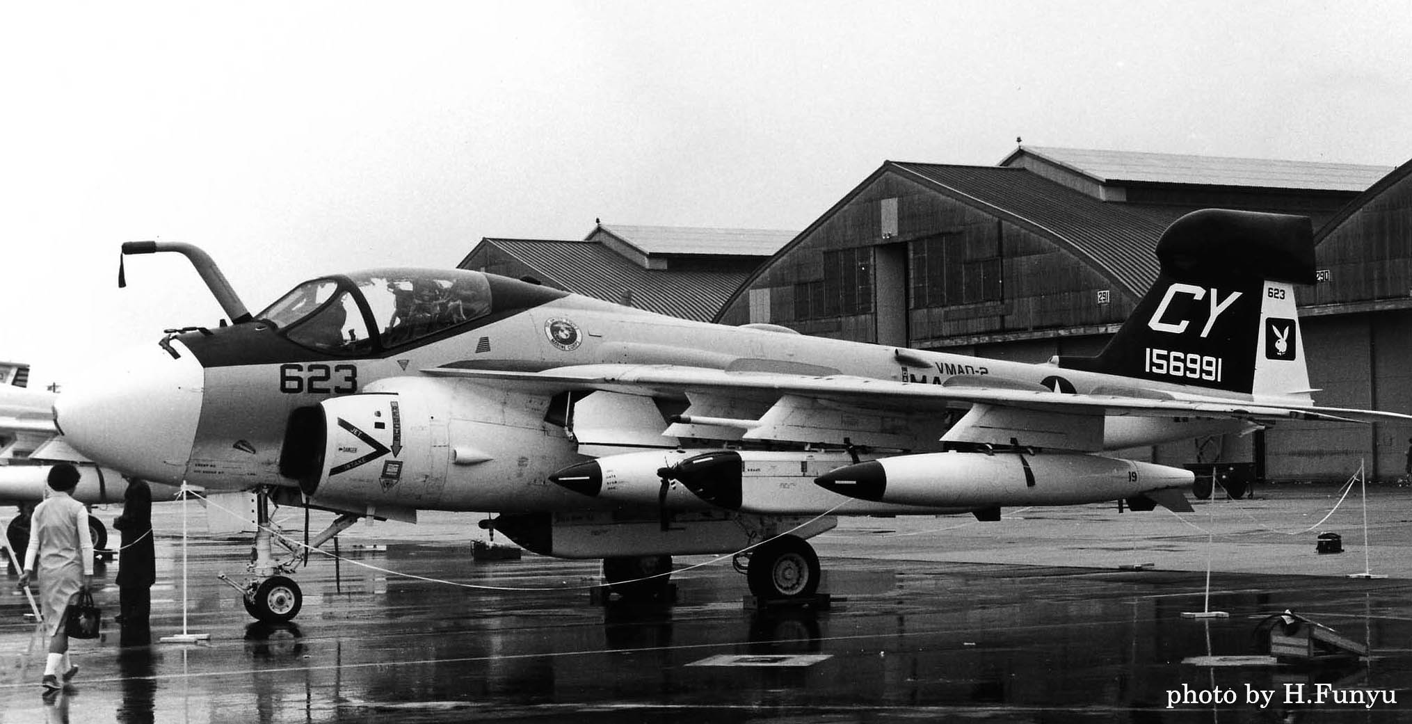 上の写真は、当時岩国へ遠征したフニュ君の成果で目の前で見るEA-6Aは、雨模様とは言え眩しかっただろう。