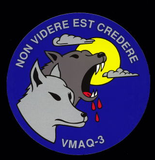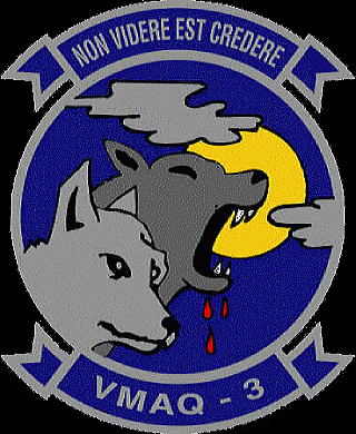 VMAQ-2の分遣隊Det-Zから分離した飛行隊で、他の飛行隊同様1992年7月1日発足である。これら新VMAQ部隊は機体定数5機となっており、岩国に派遣される時は5機撮れればパーフェクトである。VMAQ-3がまだ日本への派遣前に、オープンハウスに於いて別部隊のパイロットにVMAQ-3の部隊名を聞いたところ「マッド・ドッグ」に聞こえた為、”狂犬”かと思っていたが、いざ派遣されてみると”Moon Dogs”じゃないの・・・英語ってヒヤリングが難しい!