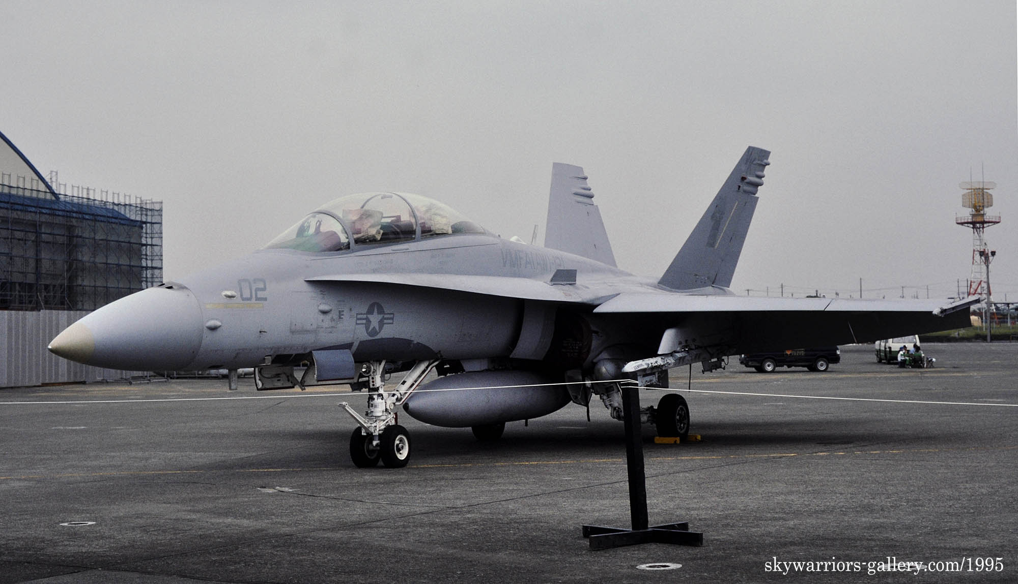 ↑ ↓ 写真は、1995年7月23日横田基地に展示された2機のFA-18D、VK-00とVK-04である。尾翼のナイツは、単調なデザインになってしまっているが、この日 VKのほかにDC、WD、WHとマリン機の展示が多くマニアは大喜びであった。