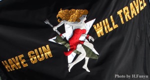 Girl”に変わったとあるが これもこのマスコットが関連している可能性がある。但し右写真の”HAVE GUN WILL TRAVEL”の文字は、1960年代日本でも放映された「西部の男 パラディン」の原名であり 主役を演じたリチャード・ブーンの拳銃に刻まれたチェスのナイトが有名である為、部隊名と絡めていることが判る。