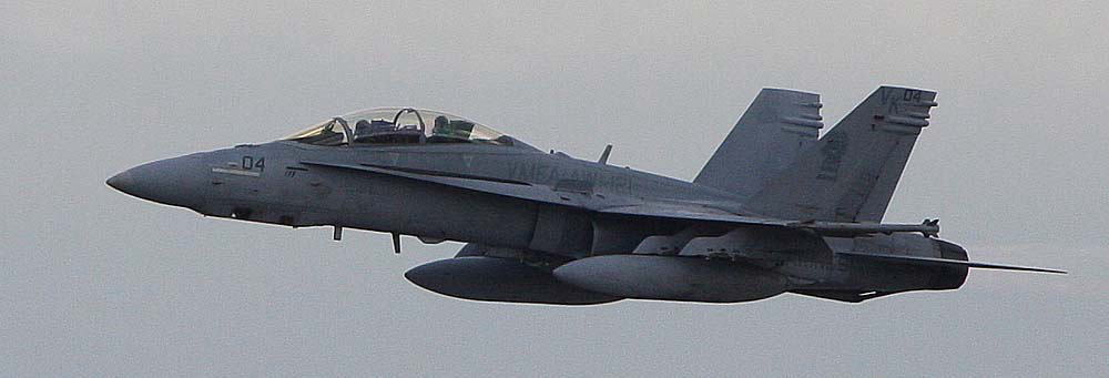 ↑ 2008年に確認された「VK-00」、機首に機上偵察システムATARSを装着している。この時期ATARS機に00番を充てていたようであり、多くの写真が残っている。IFF付の機体F/A-18D