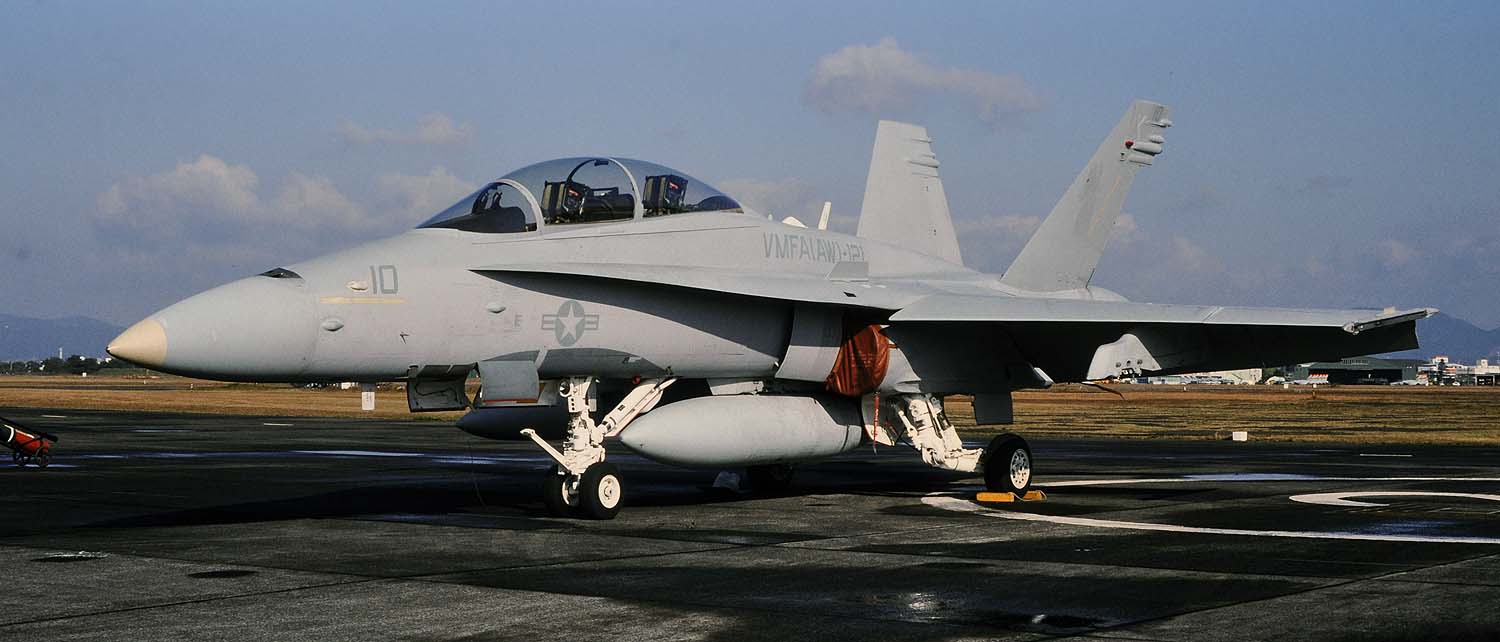 1993年浜松基地に展示されたVMFA(AW)-121のFA-18D/VK10 尾翼のナイツは、極めて薄く書かれており ロービジのお手本のような機体。