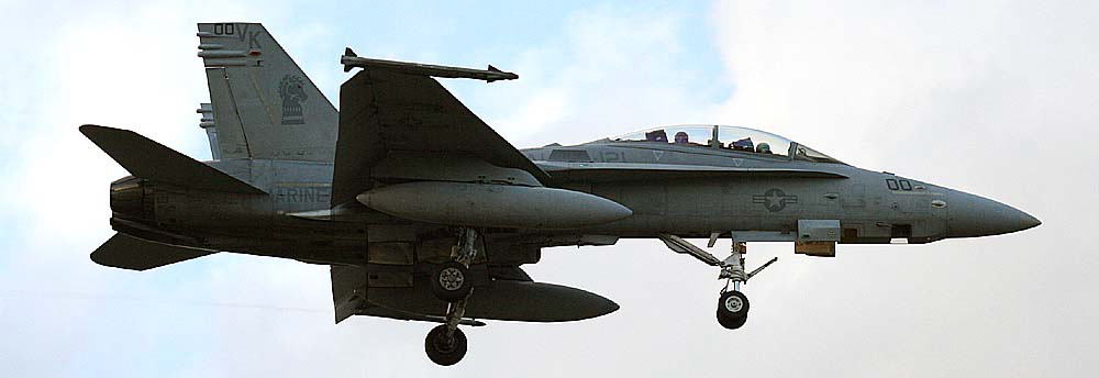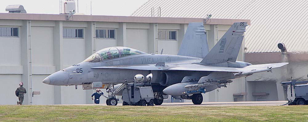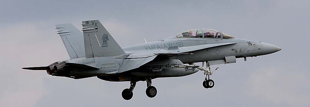 このページについても 多くの写真を掲載で来ていないので いずれは大幅にリメークするが まずは、2008年12月15日〜16日に嘉手納遠征で久々に撮影できたVMFA(AW)-121の機体をいくつか紹介しょう。残念ながら VK-01のカラーリングされた機体は、この両日は機体故障の為 飛行していない。訓練は、12月15日の週から VFA-94に変わってVMFA(AW)-121が約8機飛来し 小型の訓練爆弾(通称 茄子)を付けて訓練をしておりました。(2009/1/2 記)