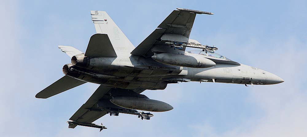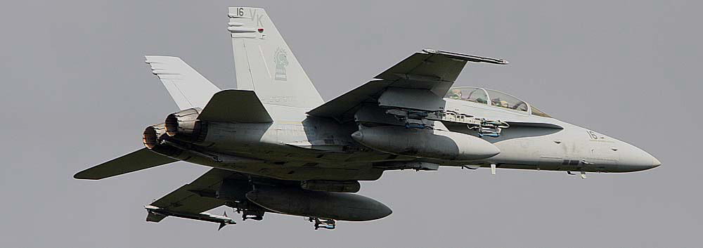 面白いのは、ほぼ同時に上がった2機のFA-18Dですが 兵装の内容は全く同じで 付け方が対象になってます。なんで?でしょう。2008年12月16日 11:15