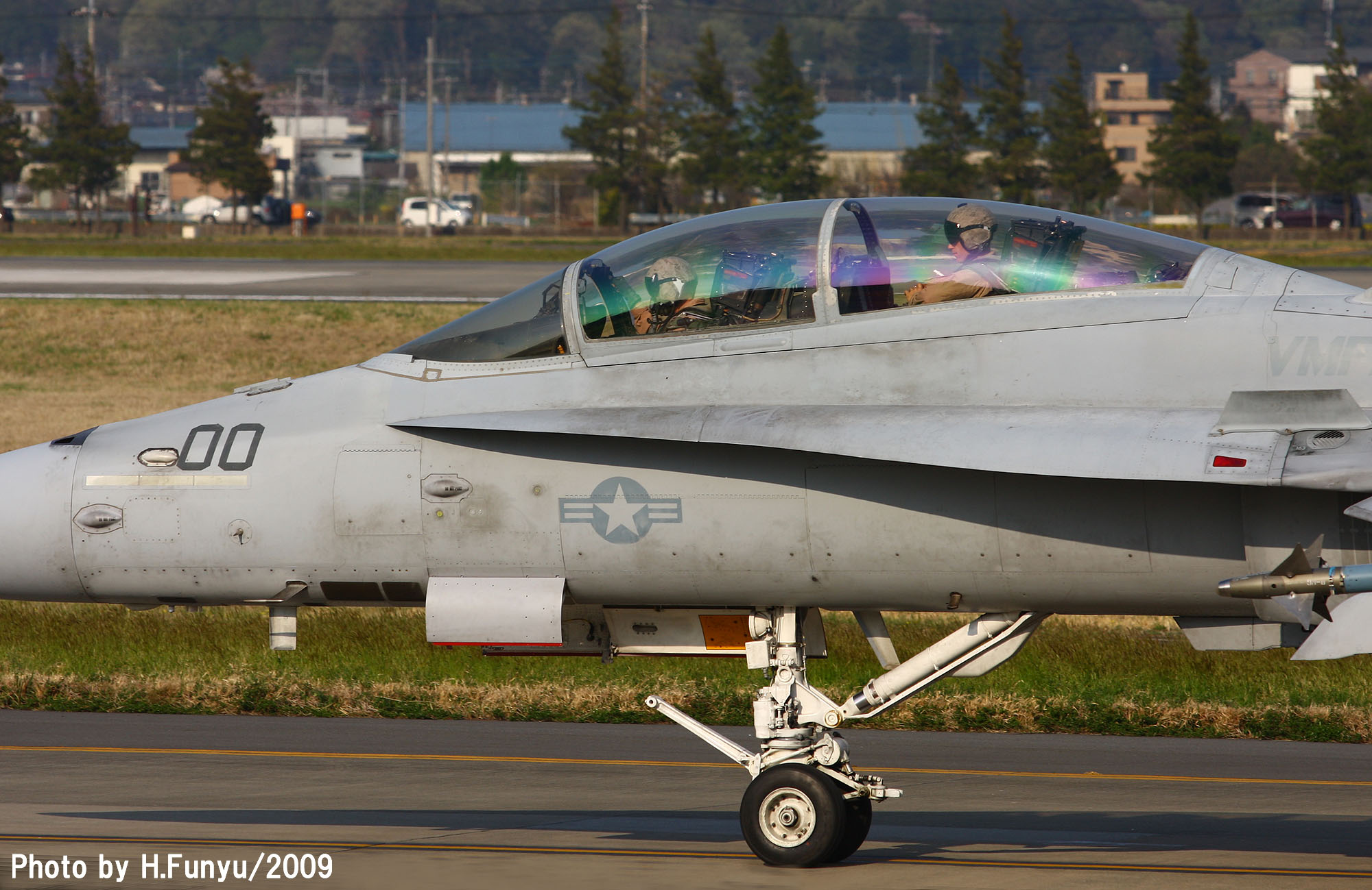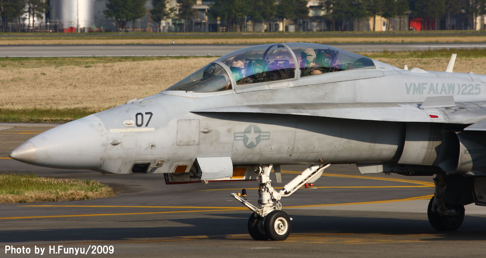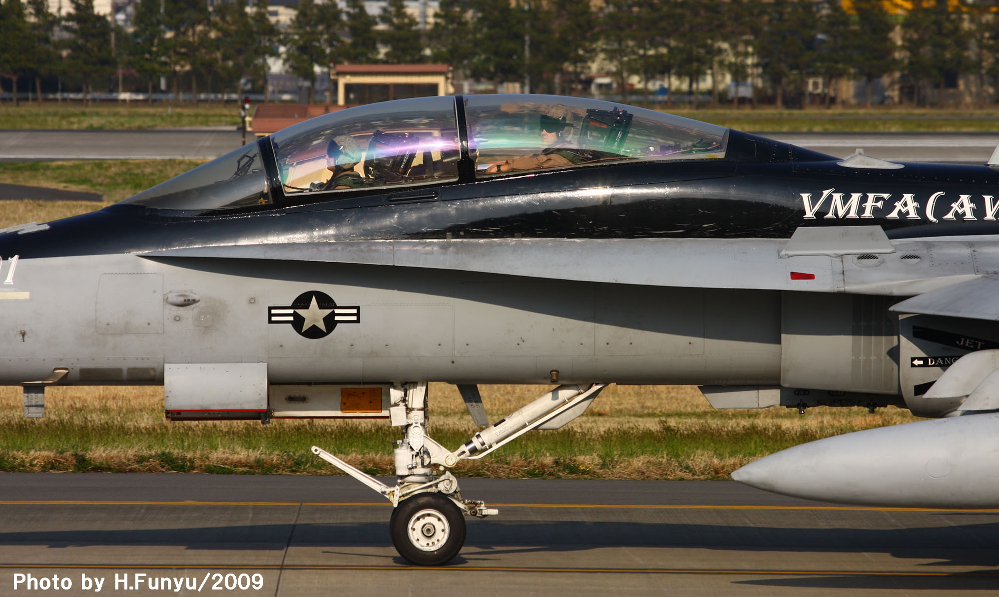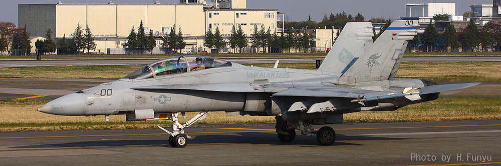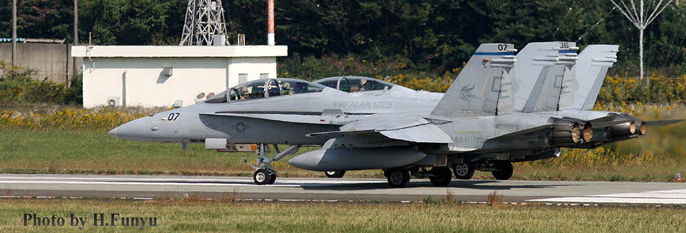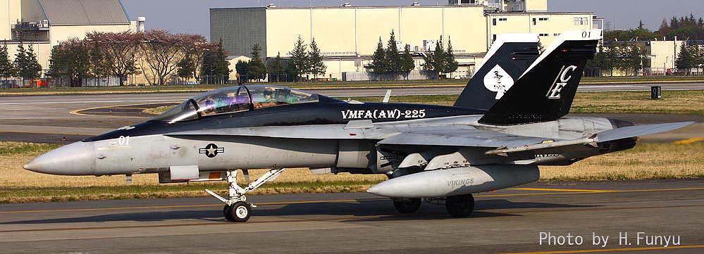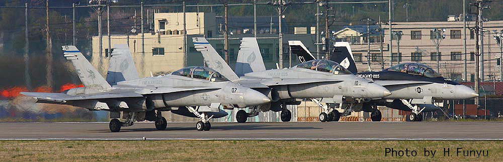 2009年4月12日 横田基地を離陸するVMFA(AW)-225のF/A-18D、この年は、横田基地は海兵隊機の飛来が多かった年と言われる。3機が同時にランウェイに載るのは結構珍しい光景である。