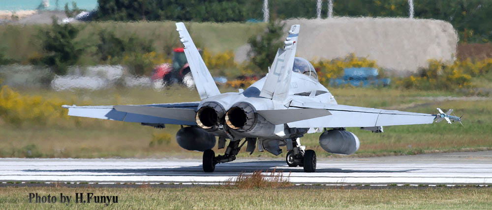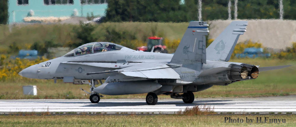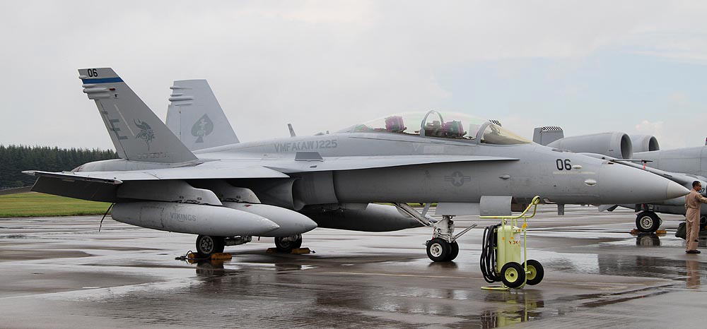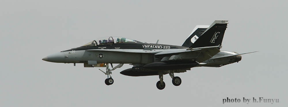 2010年10月23日 厚木に展開したVMFA(AW)-225のF/A-18D。何れの写真も友人であるフニュ君が撮影したもの、見慣れた気がしていた厚木基地も、場所によっては非常に新鮮に感じる。陽炎は強いが 周辺の草木とマッチングして機体もあでやかなのだ。