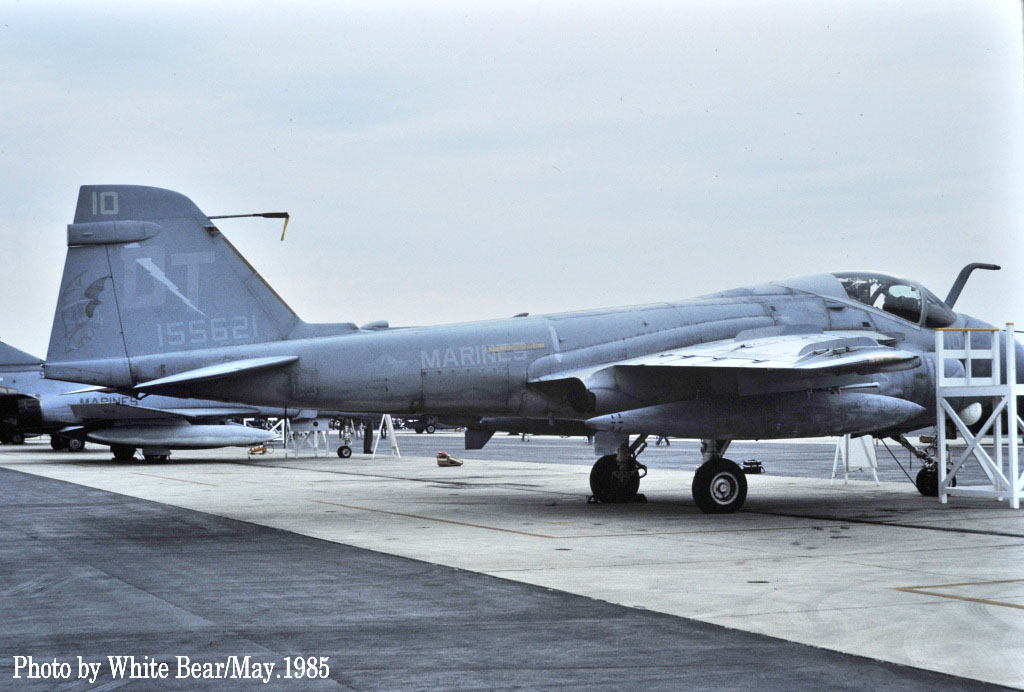 ↑ 1984年に引き続き1985年4月にも再び岩国基地に派遣されたVMFA(AW)-242のA-6Eは、同年5月の岩国航空祭にも展示されていた。White Bearさん撮影。