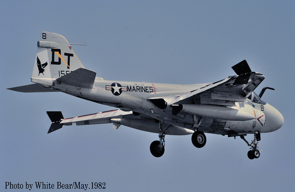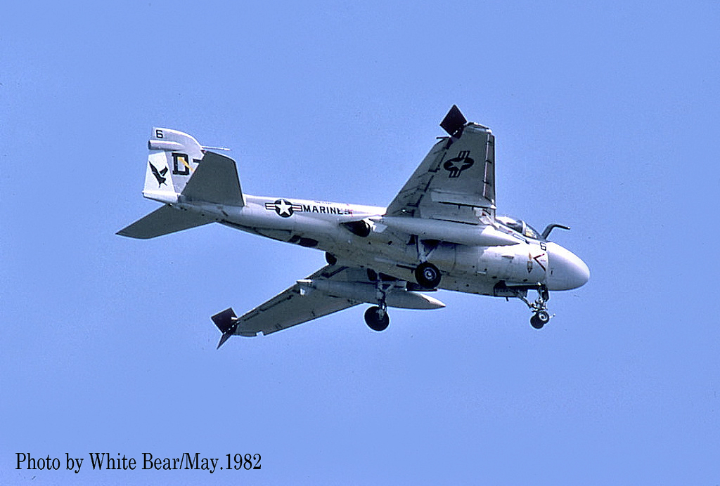 ↑ 1982年5月 岩国基地で飛行訓練をするVMFA(AW)-242のA-6E。この部隊は厚木基地への飛来が少なかった関係か、厚木基地周辺ではマーキングも含め活動の状況が殆ど判らなかった。