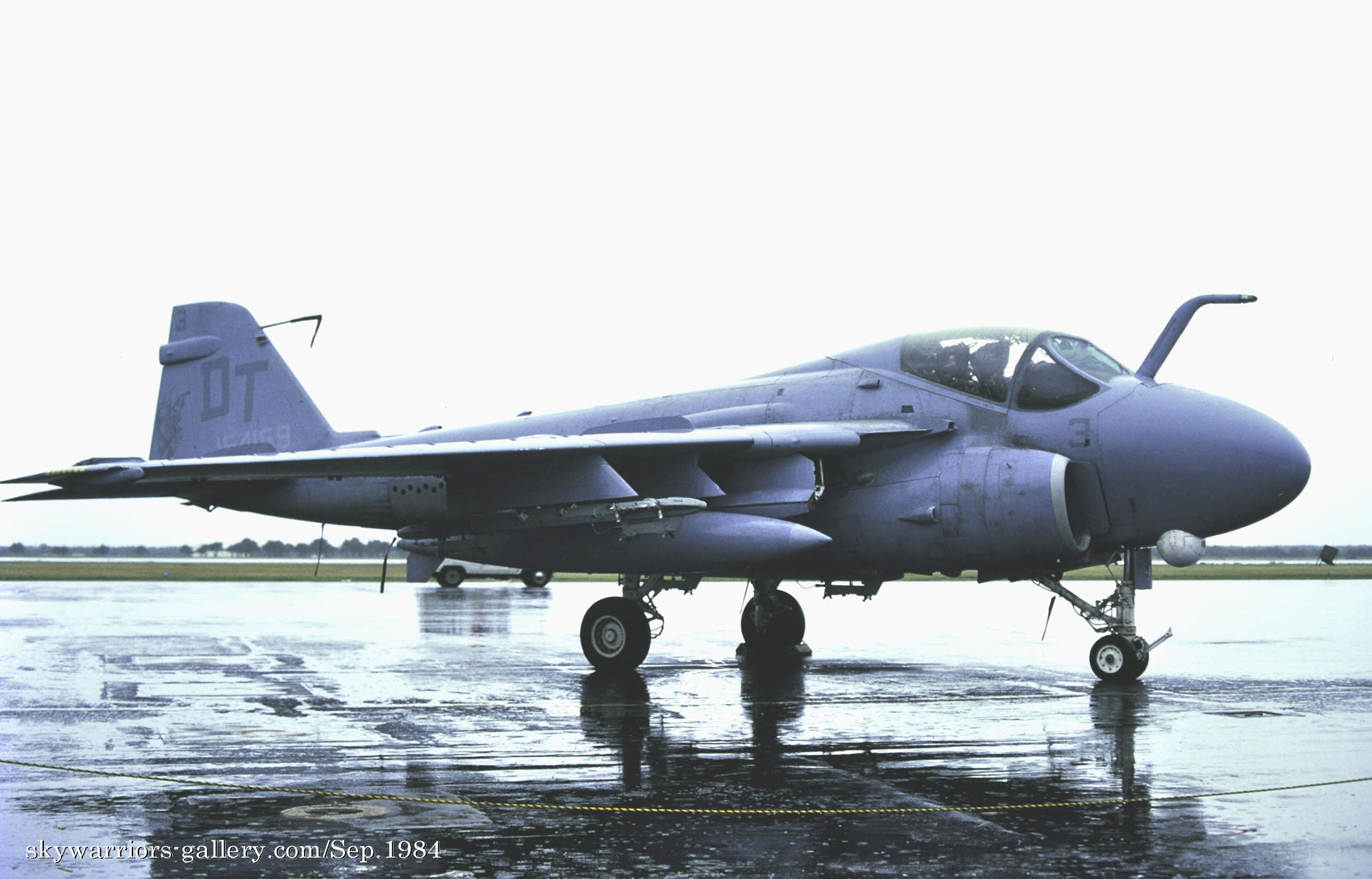 ↑ 1984年9月 雨の降る三沢基地の航空祭に展示されたVMFA(AW)-242のA-6E。確か私が撮影できた唯一のDTレターのA-6Eである。