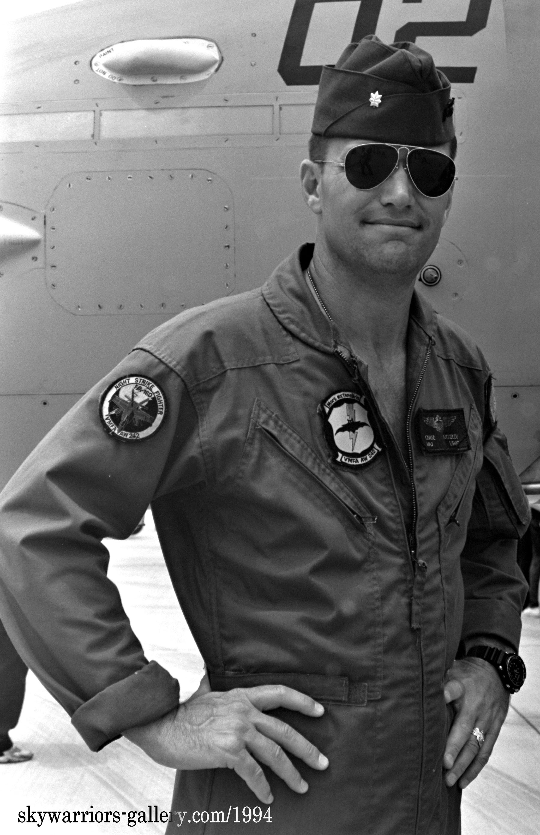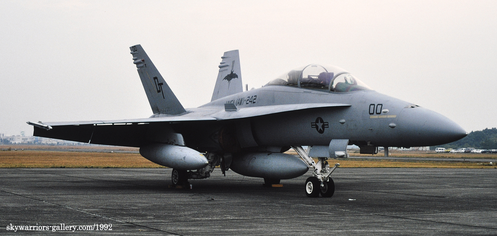 ↑上写真2枚は、1992年11月浜松基地に展示されたVMFA(AW)-242のFA-18D DT-00/DT-03。この頃は、尾翼内側の電光は全てグレー色で統一されていたようだ。文字も黒でハッキリ書かれ、グリーンナイツVMFA(AW)-121のFA-18Dとは対照的だった。