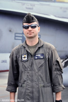 ↑ 2003年に初めてブラックテールとしてデビューした機体で大いに注目された。スコードロンカラーの黄色を国籍マークにまで使い、Modexや部隊ナンバーはオカルト風の文字で書かれている。ジェットインテークの注意書きも黒と黄の配色で、後のショーバードの基準となった機体である。F/A-18D Bu.No.164652