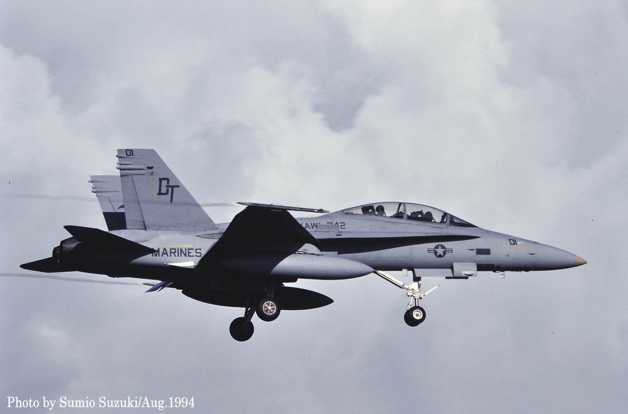 ↑ 2001年7月 厚木基地R/W01に着陸するVMFA(AW)-242のFA-18D/DT-11