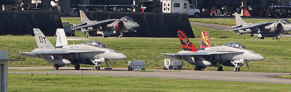 2010年 全面的にマーキングを変えたVMFA(AW)-242,同年8月 嘉手納で彼らを追ってみた。嘉手納では連日 実弾を付けた爆撃訓練を行っており 久米島近くの射爆場へ連日繰り出していた。