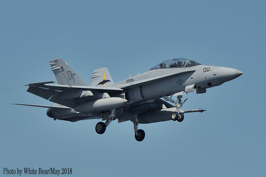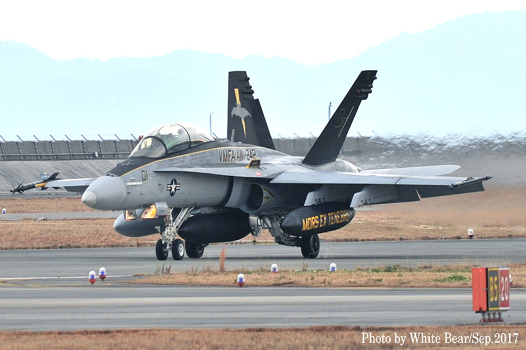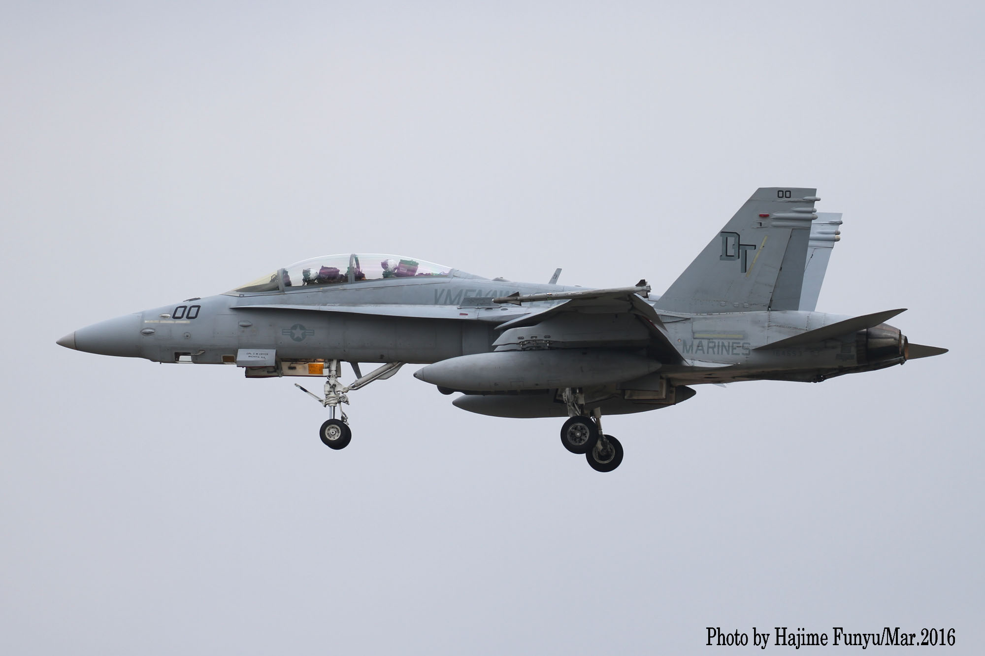 ↑ 2016年3月に厚木基地に訓練で飛来したVMFA(AW)-242のFA-18D ATARSと呼ばれるカメラユニットを付けているが、同隊にはこのタイプが常に3機程存在していたそうである。