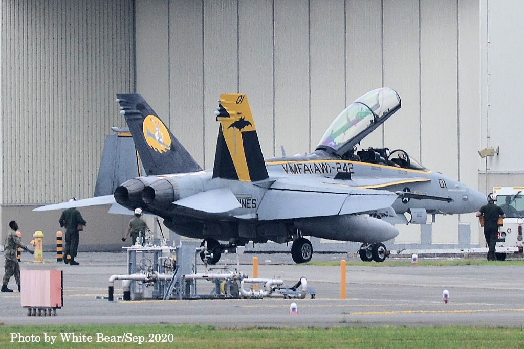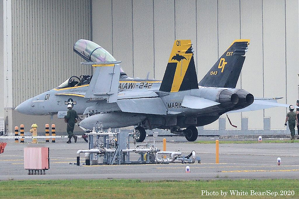 ↑ 2020年9月にWhite Bearさんが岩国基地で撮影された最後のショーバードDT-01。VMFA(AW)-242の歴代のカラーバードの中でも、最も優れたデザインの一つだと私は思うのであるが、皆さんは如何だろうか。