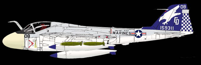 Killer”と言う愛称を持っていた。ブラックマックとは、夜間レーダー索敵の先駆者と言われ、海兵航空の夜間戦闘機隊VMF(N)-533の最初の指揮官でもあったマリオン・M・マグローダー大佐のニックネームらしい。当時最新鋭全天候攻撃機A-6Aを受領したのは、ベトナム戦の最中の1965年で、南ベトナムのチュンライ空軍基地に配属されて、1967年から足掛け3年で10000回の出撃を行い、多くの功労賞を受賞している。1967年のハノイ郊外のフクエン空軍基地攻撃の成果は特に評価され パイロットの中には海軍十字章を受章した者も輩出している。(2023年6月 記)