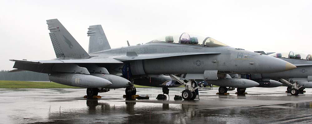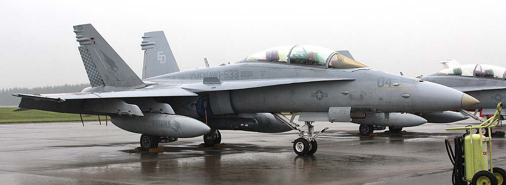 VMFA(AW)-533のF/A-18Dに機種改変した後も日本にはあまり飛来しない部隊の一つである。2001年1月に岩国に6ヶ月いたが、その間は、航空祭そのものも少なく、僅かしか撮ることができなかった。MCASビューフォートに所属する飛行隊は、ビューフォート以外に地域に派遣される際はテール・レターを”BM"にしなさいとのアホくさい命令のお陰で、日本のマニアは、”BM"レターの機体ばかり撮ることになった時期もある。