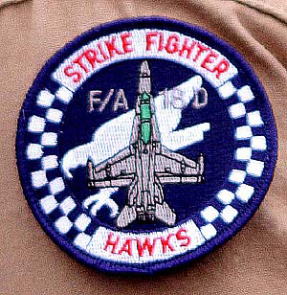 ↑1997年ボスニア紛争後の周辺監視作戦の為、イタリアのアビアーノ基地に展開して際の記念のマーキングと思われる。尾翼にはイタリアの地図が鷹をバックに書き込まれており、さらにこの部隊の標語でもある「IN HOC SIGNOC VINCES」このサインのもとで征服せよ!と言う十字軍遠征時代のテンプル騎士団の標語が書かれている。F/A-18D Bu.No.164866