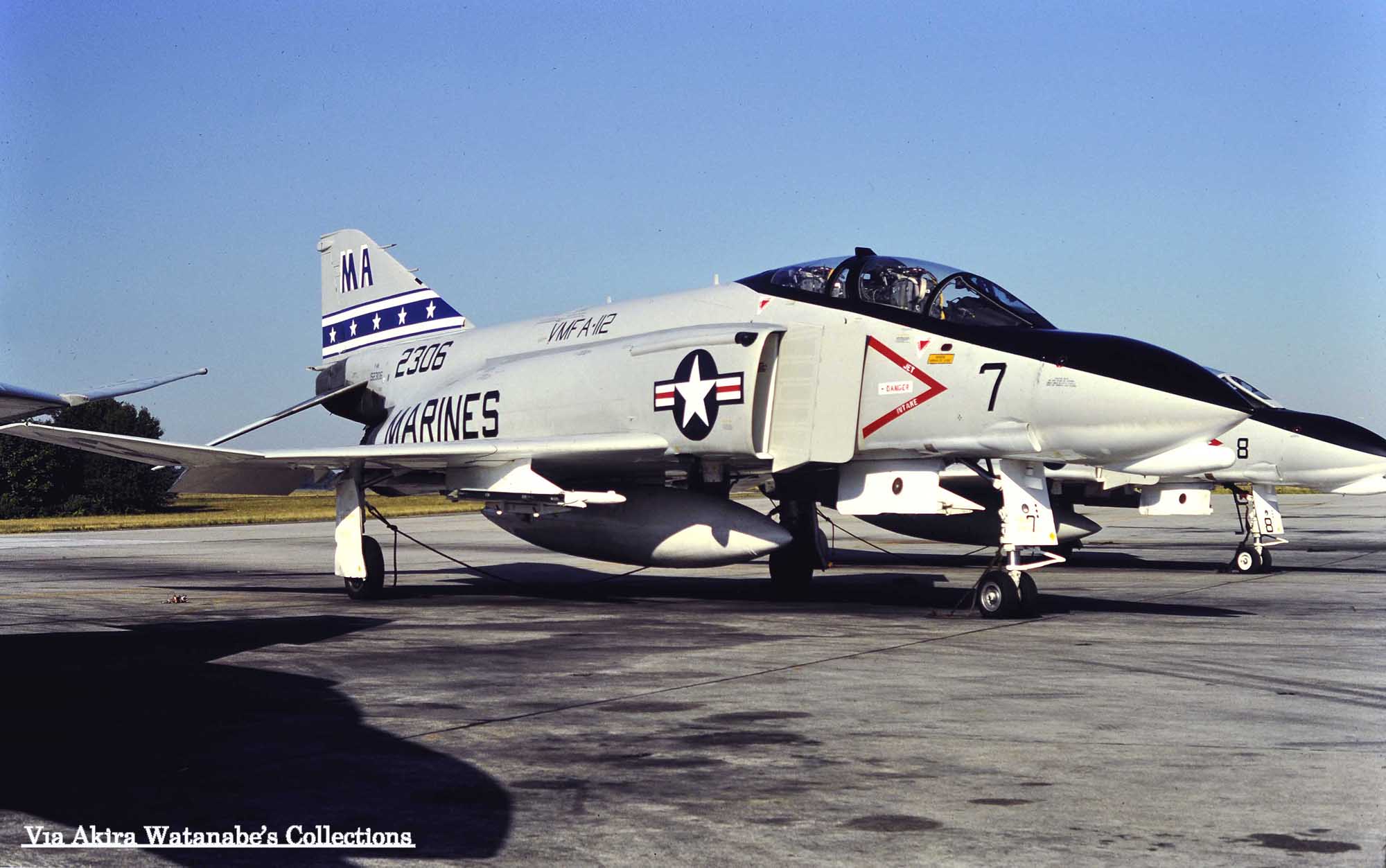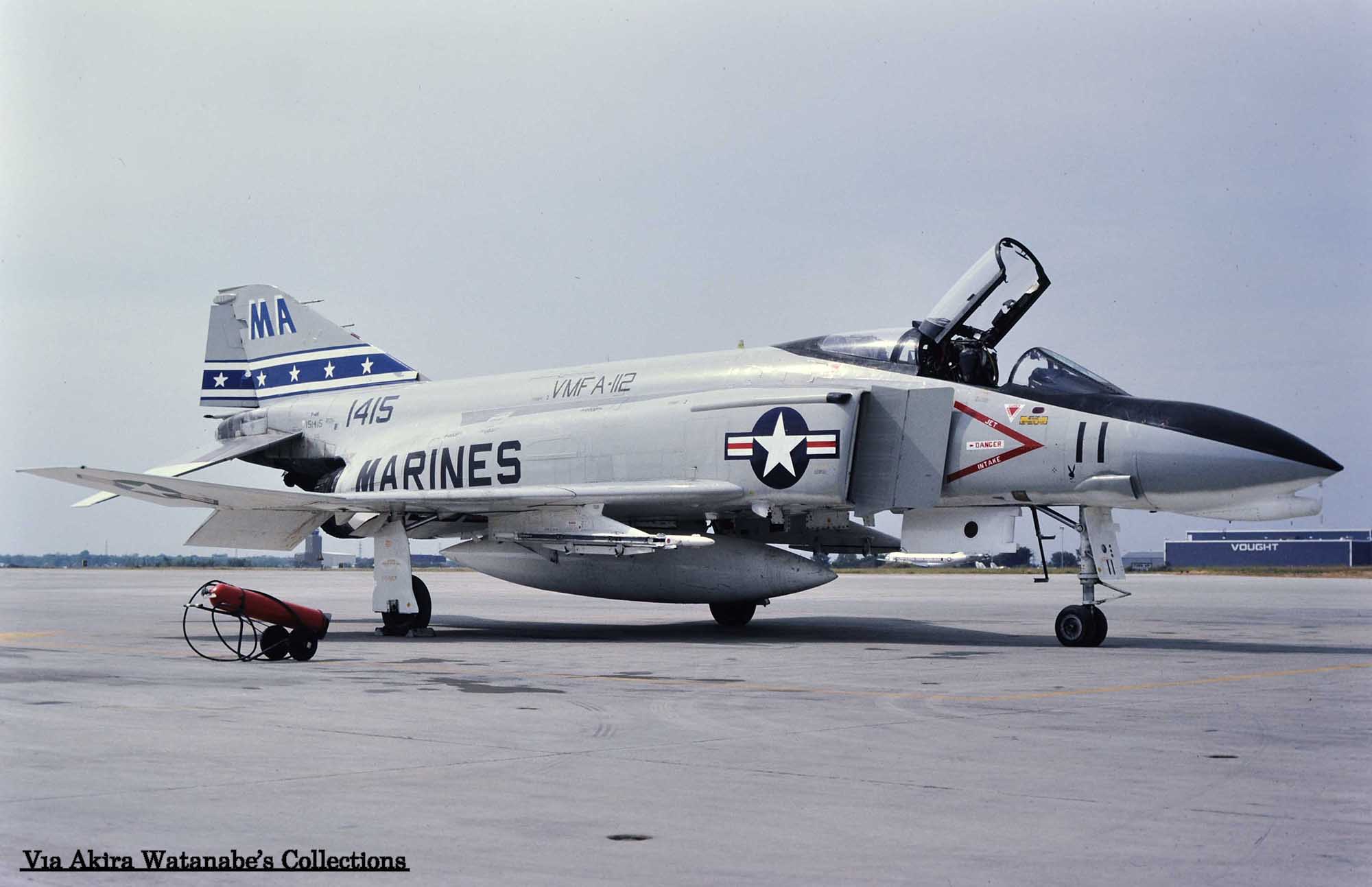 ↑ 1977年10月にカンサス州のフォーブスANGBで撮影されたVMFA-112のF-4N。この基地は現在はトペカ・フォーブス空港と名付けられ民間空港になっている。