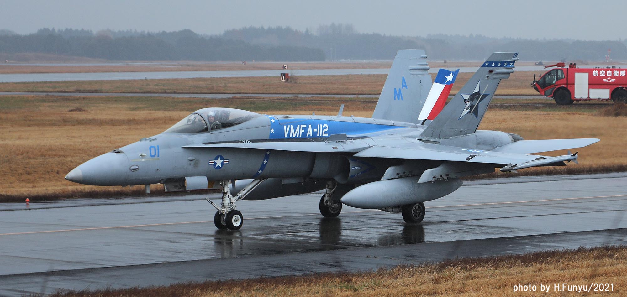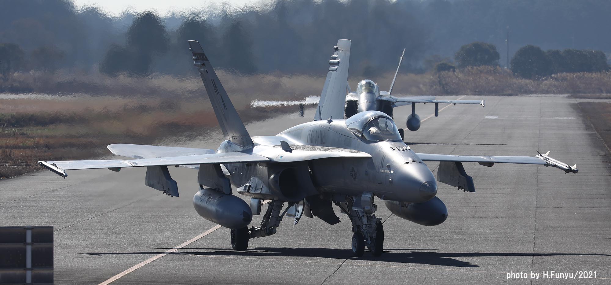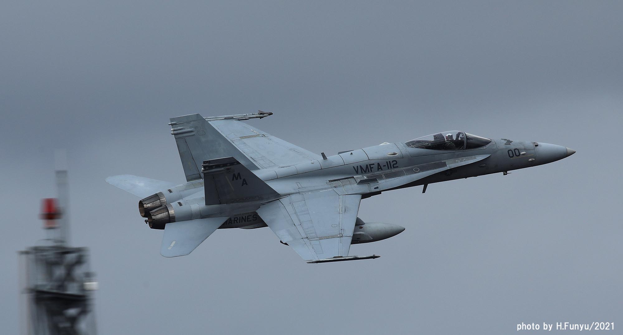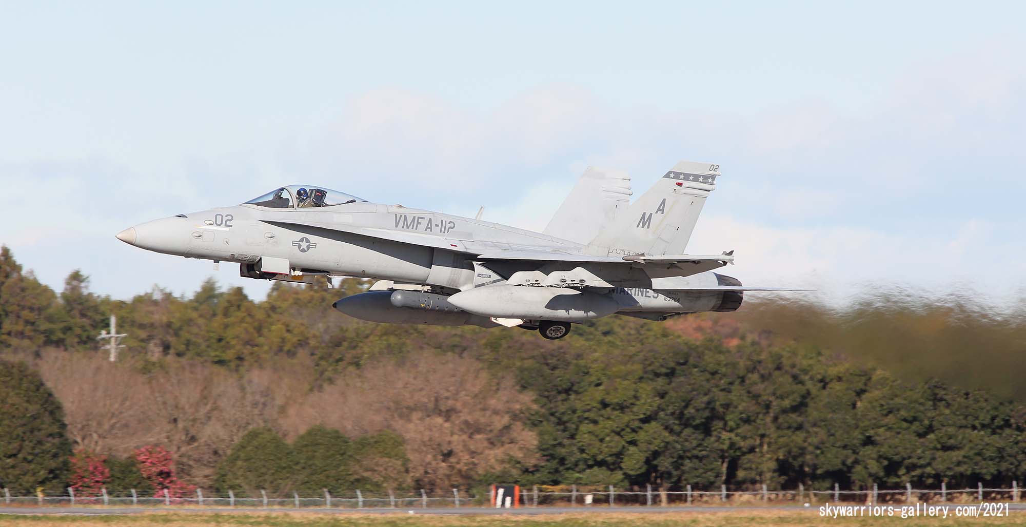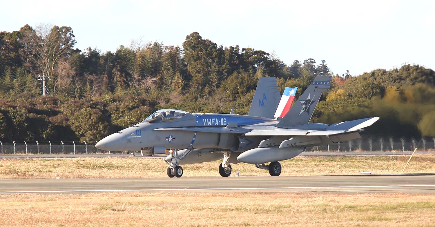 2021年秋、岩国に飛来したカーボーイズの一群は、岩国だけでなく横田、嘉手納にも少数機が展開し、マリンコファンを喜ばした。12月に入りなんと百里でF-2Aと共同訓練をすると言う情報が流れ、多くの航空ファンが12月の寒空の中、百里に向かったのだった。部隊は、訓練予定の前週12月8日に突然百里に飛来し、その翌日に突然ローカルフライトするなどファンの予想を超えた動きをしたが、訓練飛行が予定されていた12月13日から週は、月曜日からしっかりとミッションを消化してくれた。その模様をお届けしたい。本来、テキサス州フォートワースまで行かねば撮れない被写体だけに、このチャンスを逃すまいと記録的な人数の航空ファンが百里に集まったのだが、それに答えるように各機はべたべたの低空離陸とブレークを行い背中バックシのシャッターチャンスもファンたちに提供してくれた。