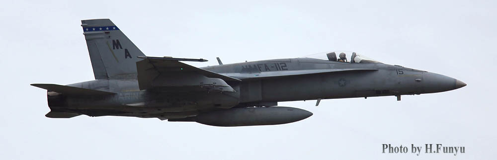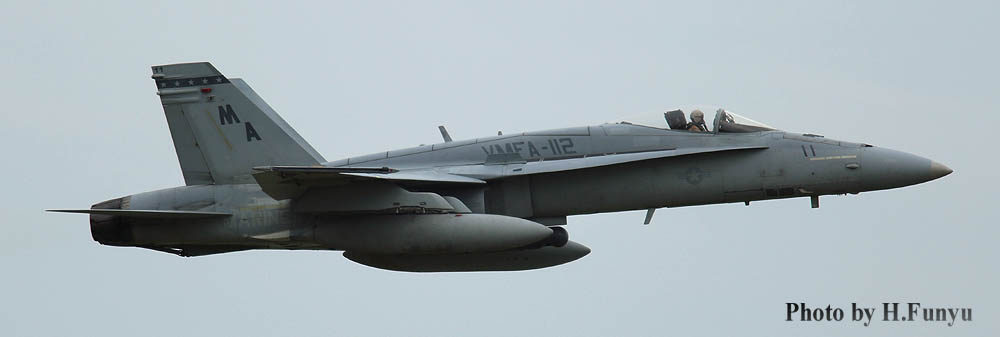 2013年再び日本でVMFA-112.のフライトを見ることができた。2004年の飛来から7年ぶりである。VMFA-112 カウボーイズ10機は、ハワイのカネオへ・ベイ経由で8月3日に岩国に到着。機体は、FA-18のA型+らしい。
