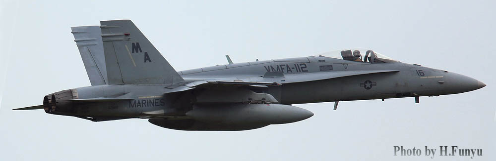 VMFA-112のインシグニアに狼の姿があるが、前述の通りこの部隊昔は”Wolf Pack”と名でWW-Uではガダルカナルなどに展開していた海兵隊の老兵である。1992年のF-4NからFA-18Aへ機種更新、2002年にA型+に更新している。