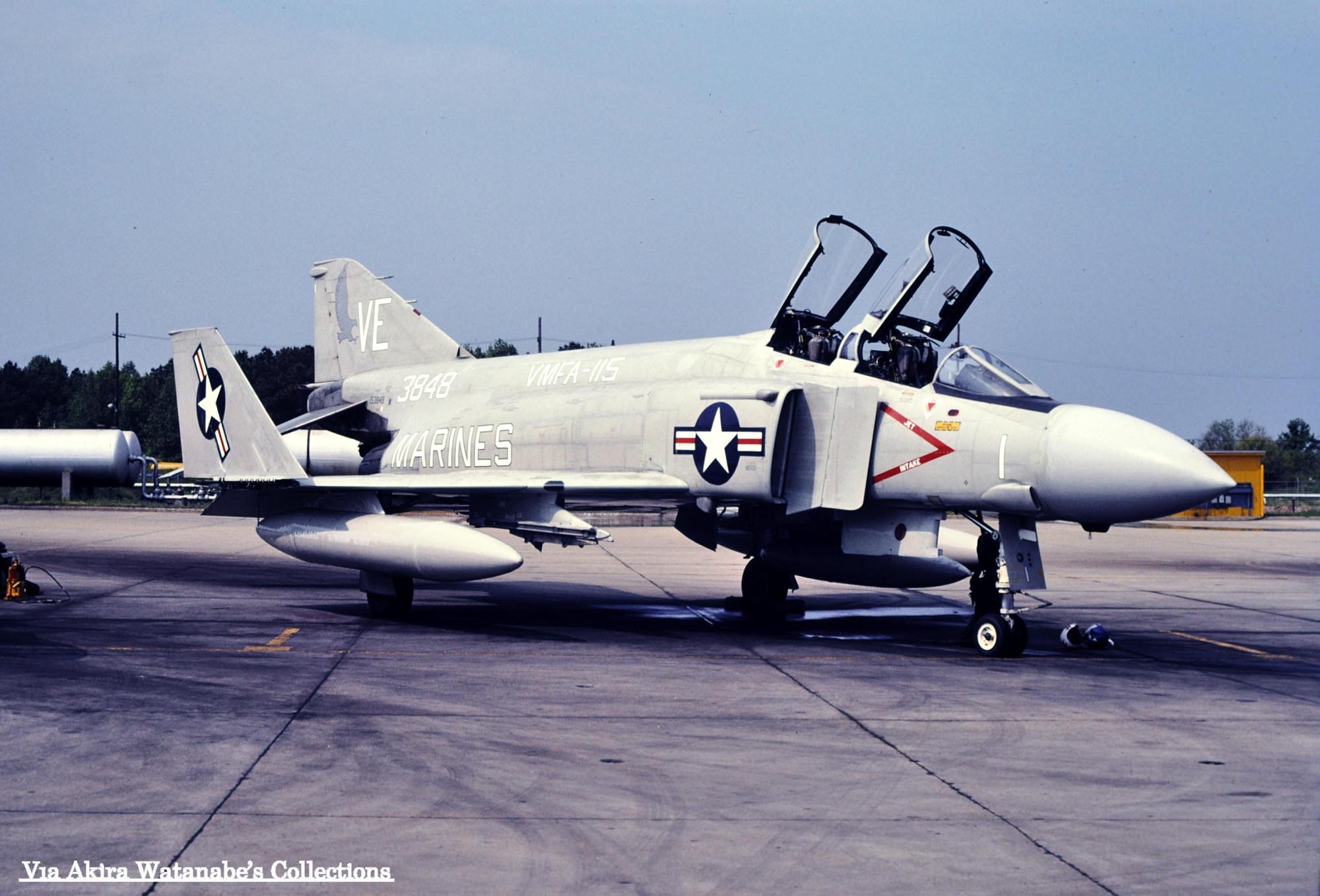 ↑ 1978年7月マクガイヤー基地で撮影されたVMFA-115のF-4J/VE-5。
