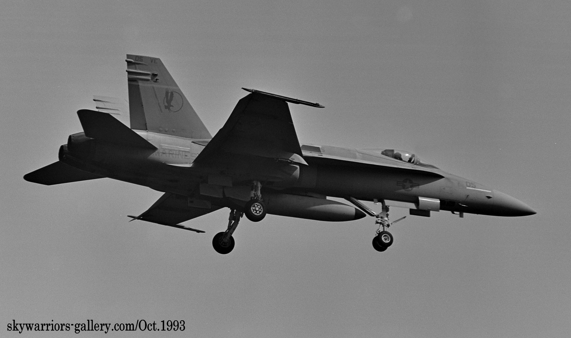 ↑ 同日にVE-08とペアで飛来着陸したVE-05。VMFA-115の岩国派遣4度目が1993年夏であるから、初回の派遣機とは大分機体が入れ替わっているはずで、尾翼の機番表記も僅かながら異なっている。