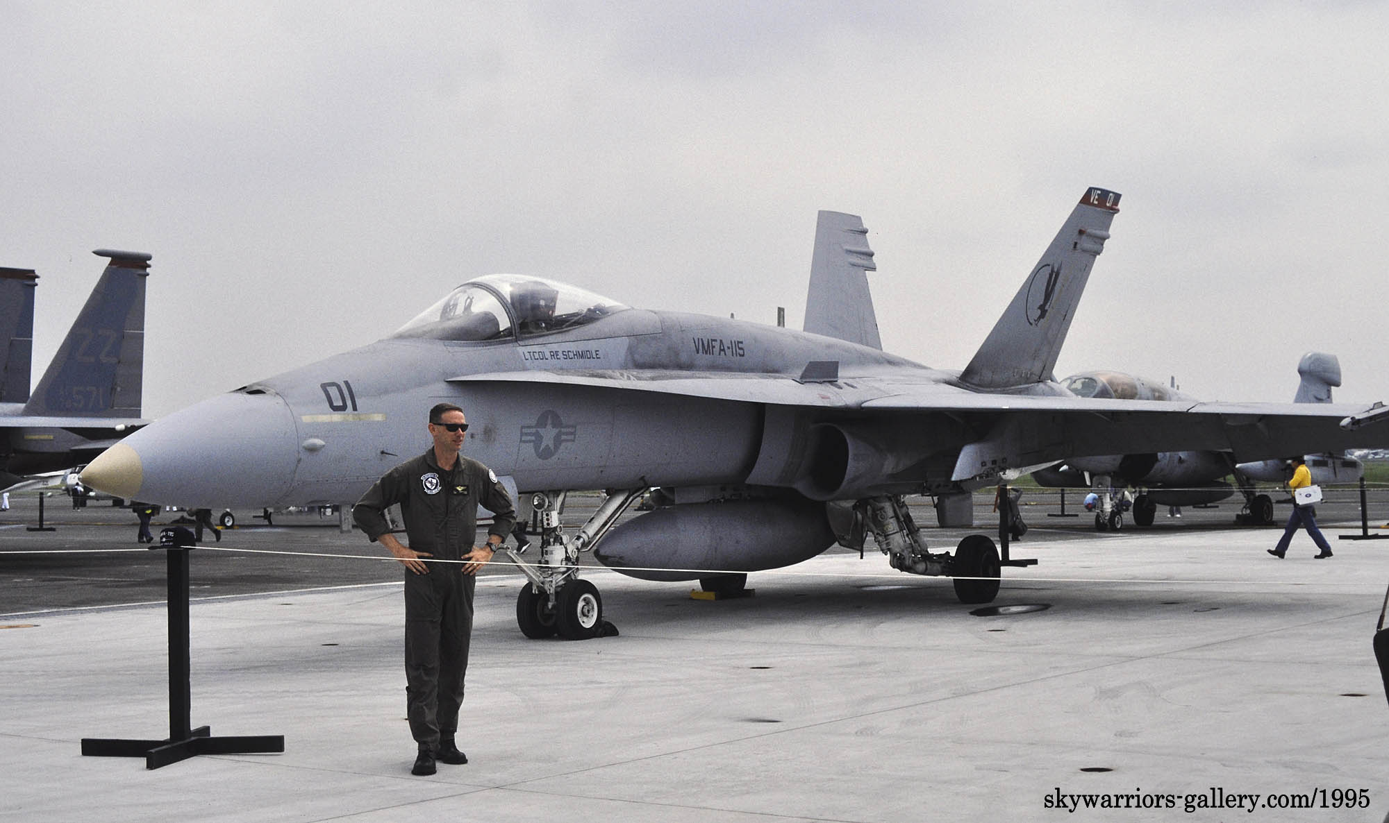 ↑ 1996年9月横田基地に展示されたVMFA-115のFA-18A/VE-01。鈴木純夫氏撮影