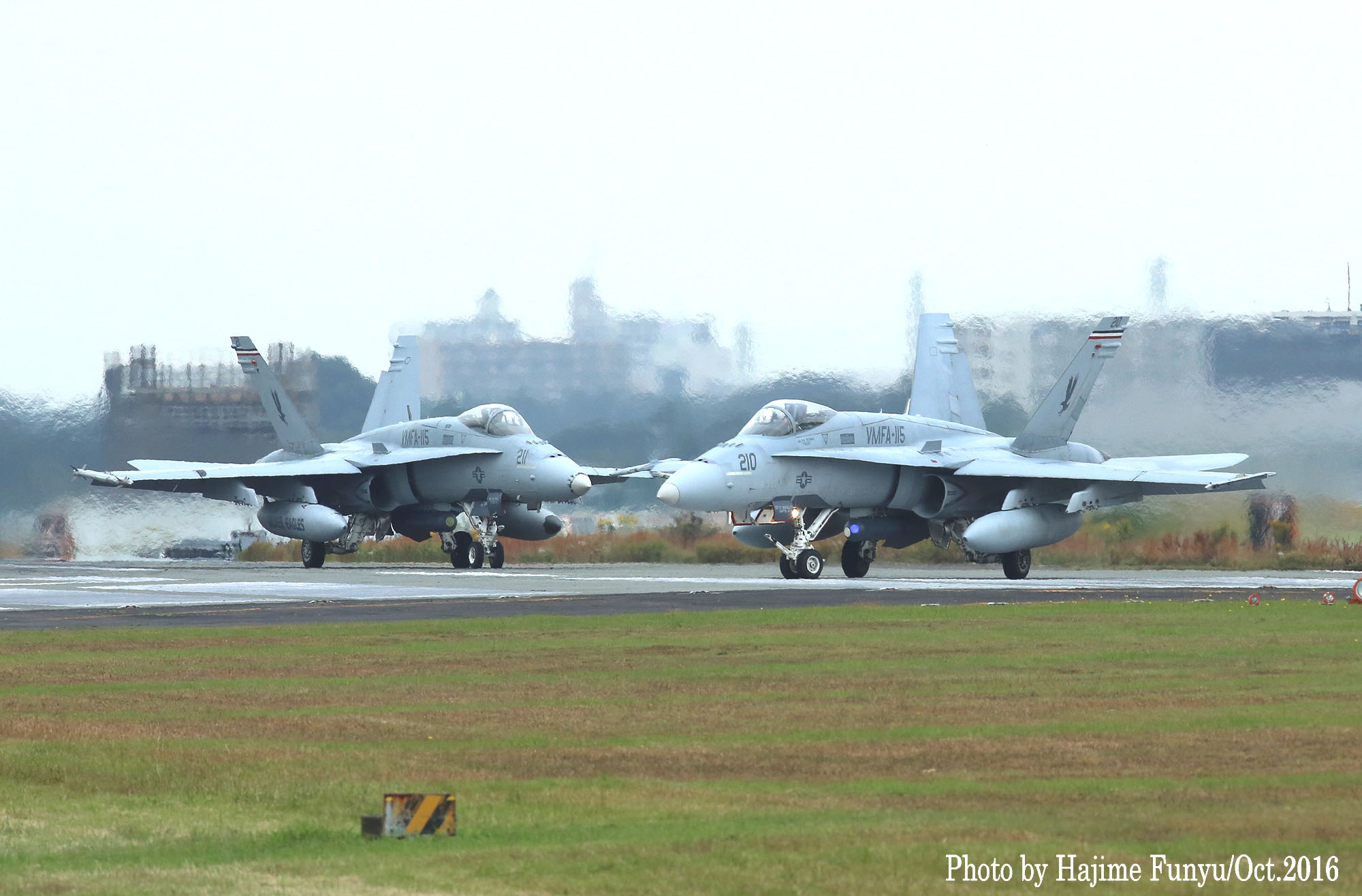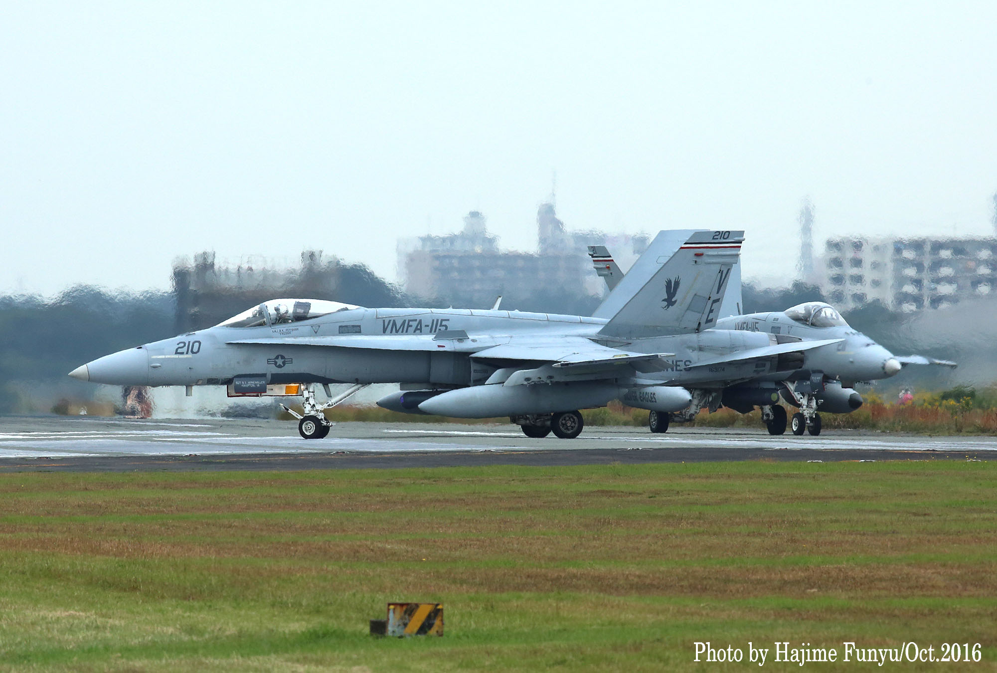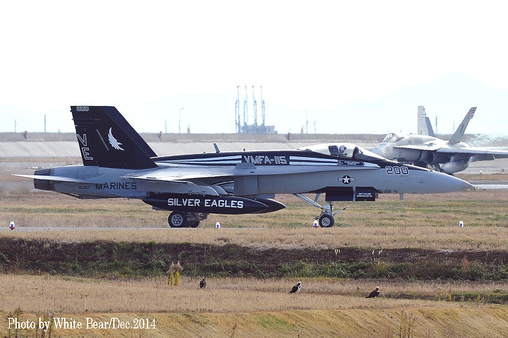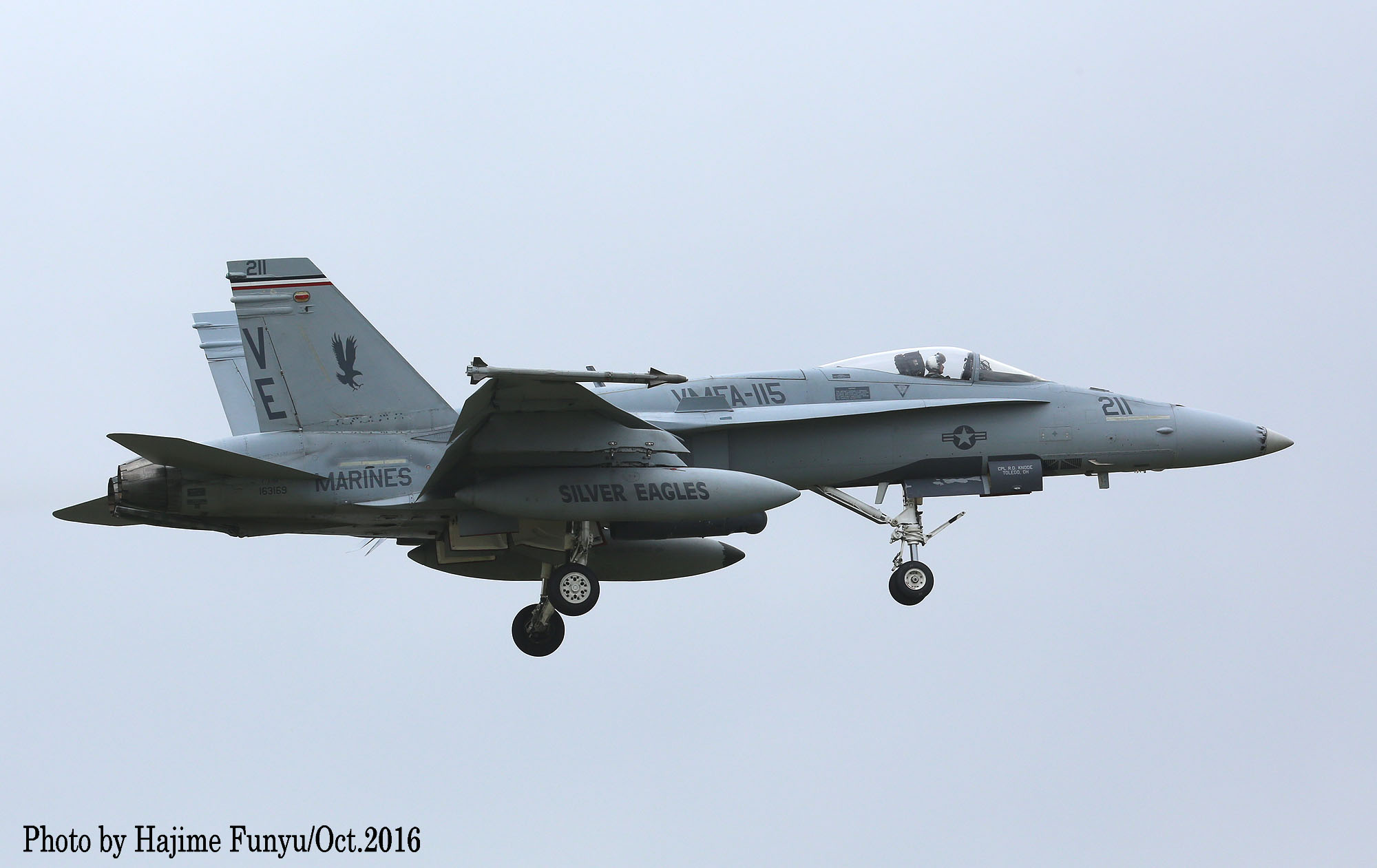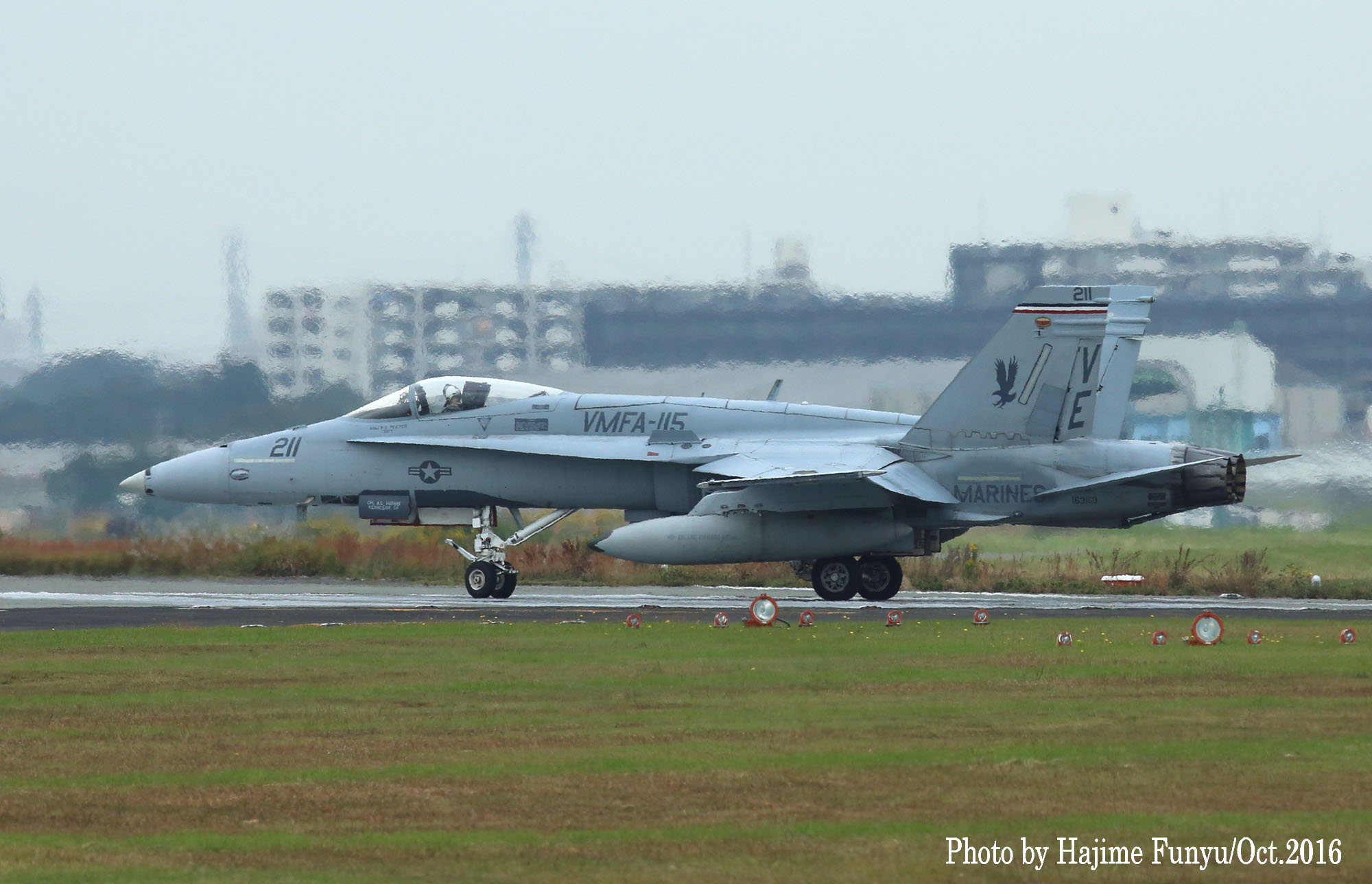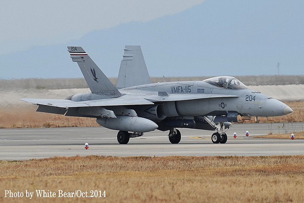 ↑ 2014年10月 岩国基地で訓練飛行を終え着陸したVMFA-115のFA-18A++